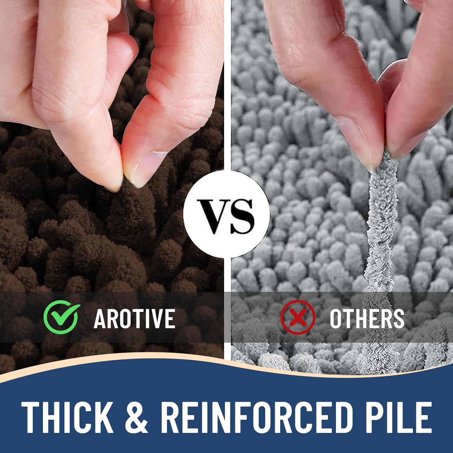 Arotive Luxury Chenille Bathroom Rug Mat, Extra Soft Thick Absorbent Shaggy Bath Rugs, Non-Slip Machine Wash Dry, Plush Bath Mats for Bathroom, Shower and Tub, 60x20, Brown