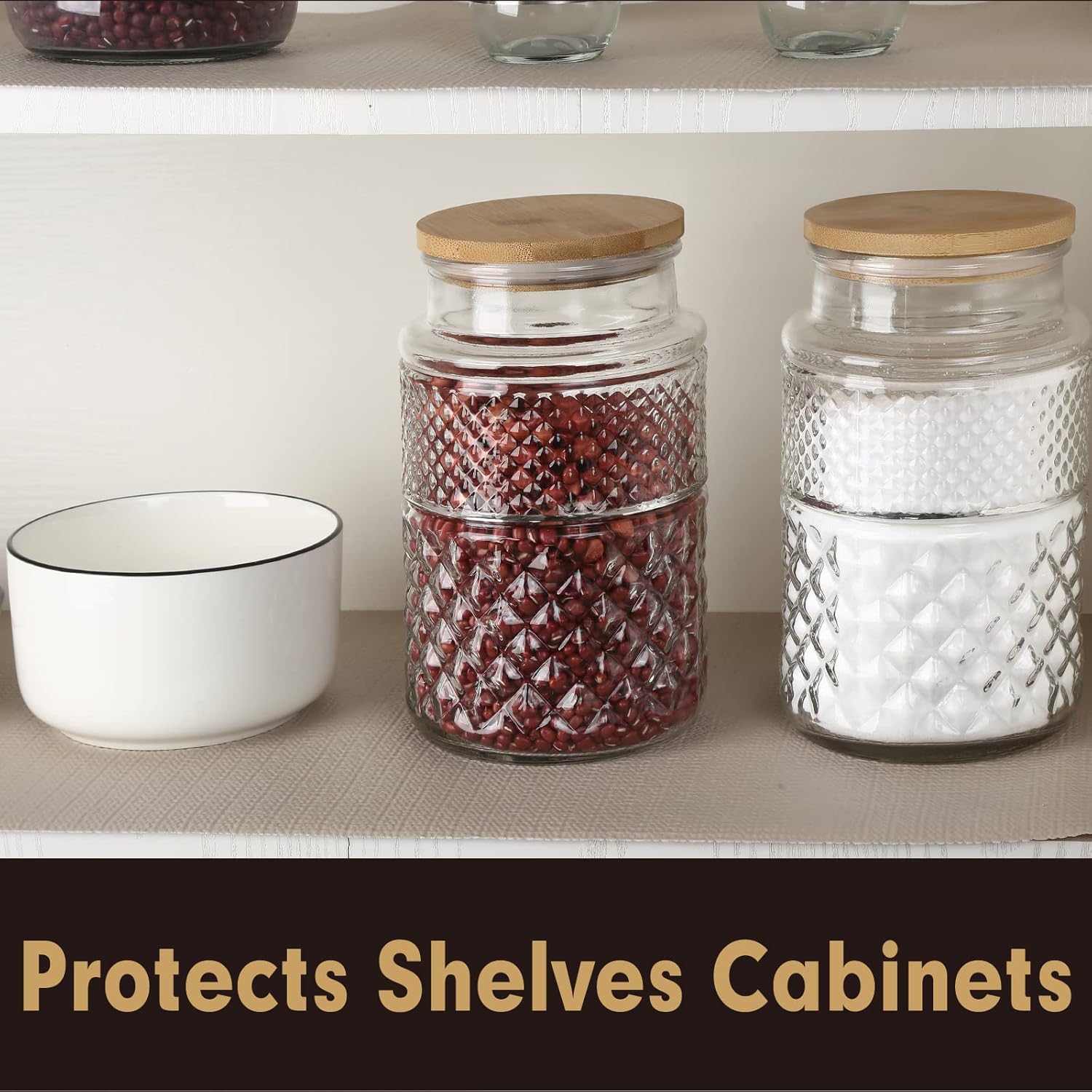 - [Strong Grip Non Slip Shelving Liner] Our shelf drawer liners are designed without adhesive to provide an incredibly strong and powerful grip, reducing slipping and bunching in your drawers or cabinet shelves. Keep your organized items in place without any glue or sticky adhesive residue.