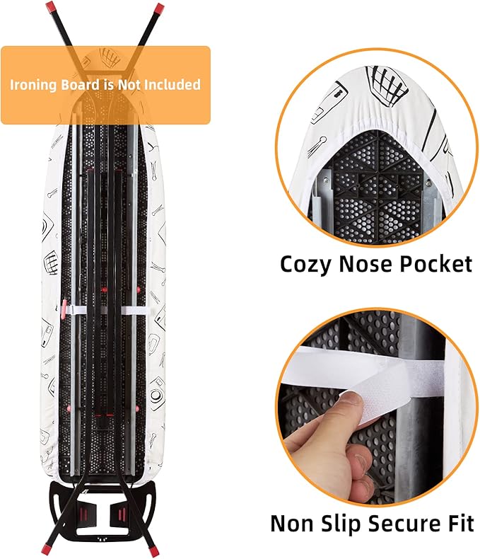 - SECURE ON YOUR IRONING BOARD TIGHTLY: The unique double non slip nose bag simplifies installation and secures it firmly in place. The elastic edge can tighten and straighten the ironing board cover to ensure that it is not easy to move or slide