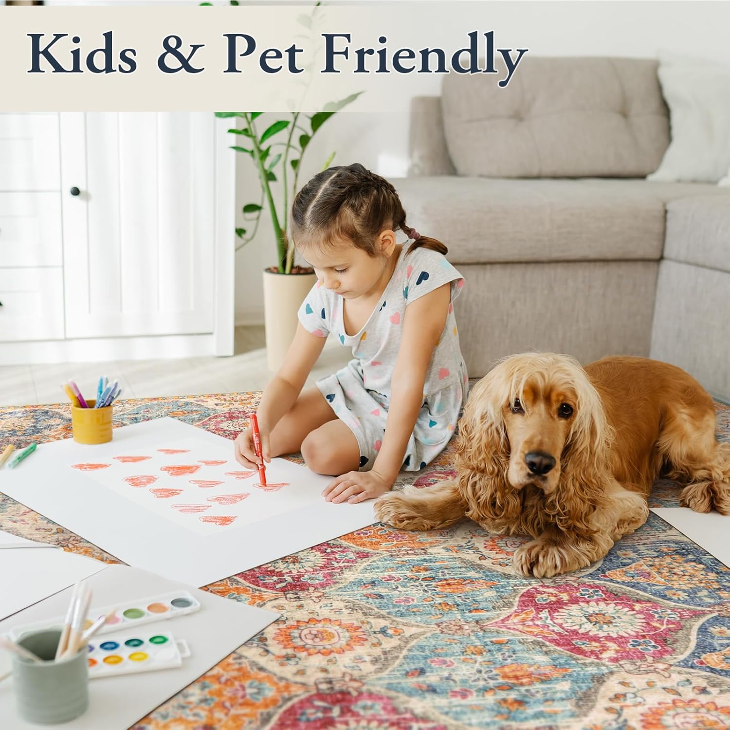 - Kids and Pets Friendly: 0.16 inch low pile rug, pet dander and hair won't get trapped inside, prevents pets and children from chewing or scratching. Pets' paws won't get snagged or get caught on edges causing them to scratch floors