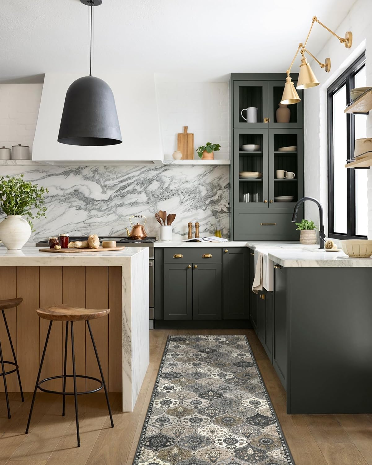 Lahome Moroccan Trellis Kitchen Runner Rug, 2x5 Washable Runners for Hallways Non Slip Soft Hallways Rug Ultra-Thin Vintage Long Carpet for Bedroom Bathroom, Grey