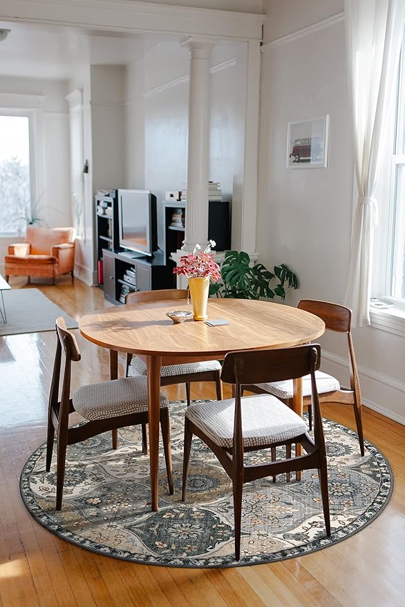 Lahome Moroccan Trellis Washable Round Rugs, Non-Slip Soft Round Rug 4ft Ultra-Thin, Small Vintage Circle Carpet for Entryway Kitchen Bedroom Nursery Bathroom, Grey