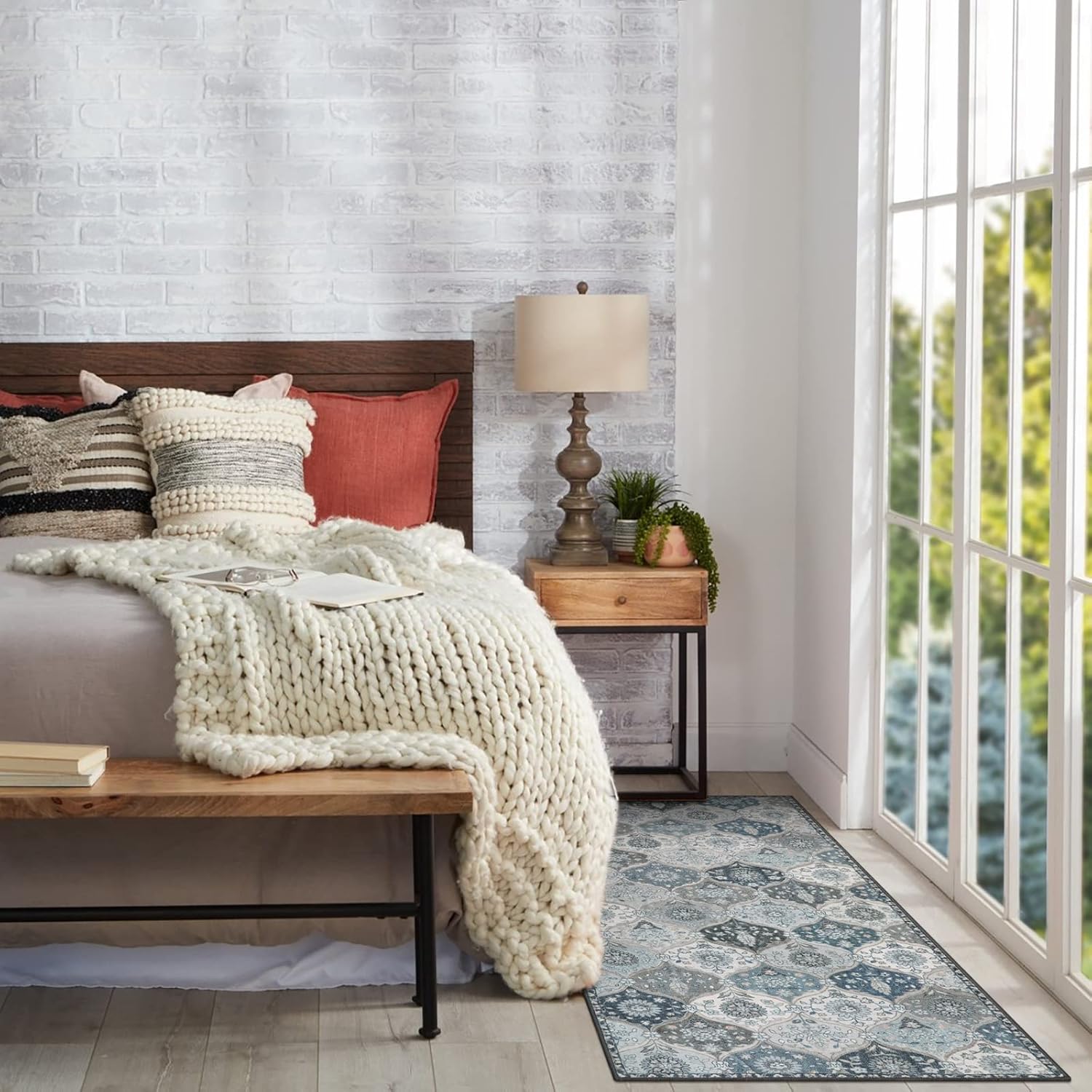 Lahome Moroccan Trellis Kitchen Runner Rug, 2x5 Washable Runners for Hallways Non Slip, Rubber Backing Ultra-Thin Vintage Carpet for Entryway Bedroom Bathroom, Blue