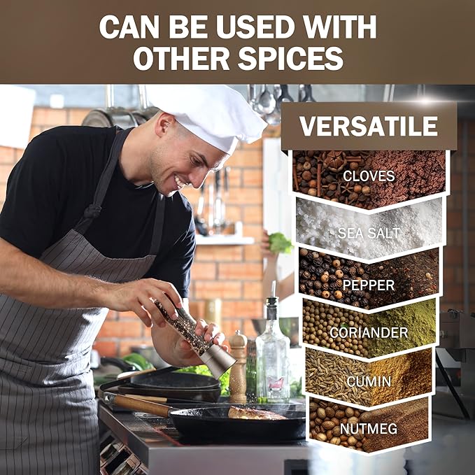 - Kitchen Must Haves and Wedding Registry Items: This beautiful salt and pepper grinder set is not only a practical kitchen accessory but also a stylish kitchen dΓ©cor item. Made of premium materials, the adjustable grinders allow for fine to coarse grinding and make a great addition to any wedding registry or kitchen must-have list. Elevate your cooking game and add a touch of sophistication to your kitchen with this elegant and functional grinder set. A must have kitchen gadget.