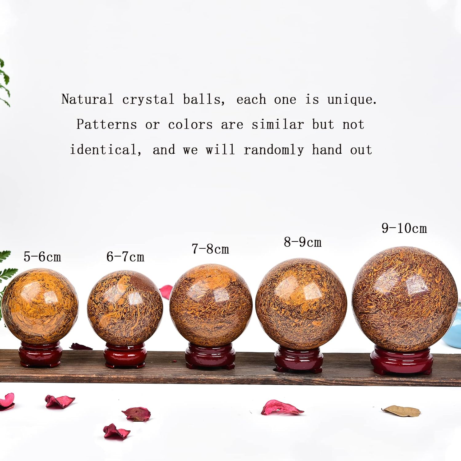 - 【What You Receive】:You will receive a Golden Silk Jade Quartz Crystal Ball Sphere with wooden base,Diameter3.5-4.0 Inch.Each and every specimen is unique and you will receive ones similar to the image shown