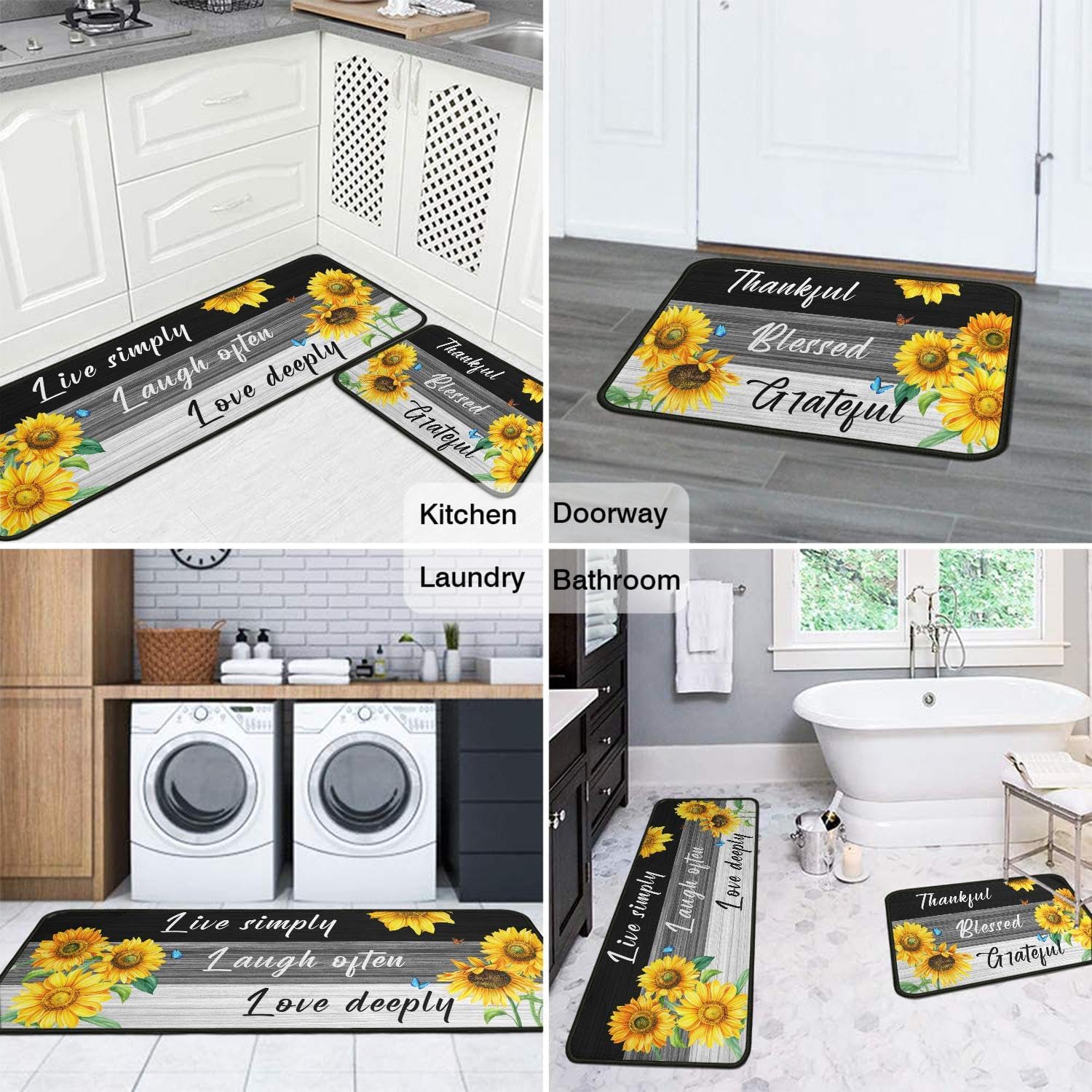 - Comfortable Mats: Sunflower rugs absorbent kitchen mat uses high-quality non-slip rubber dot backing and friction surface, The purpose of this design is to improve friction and safety.