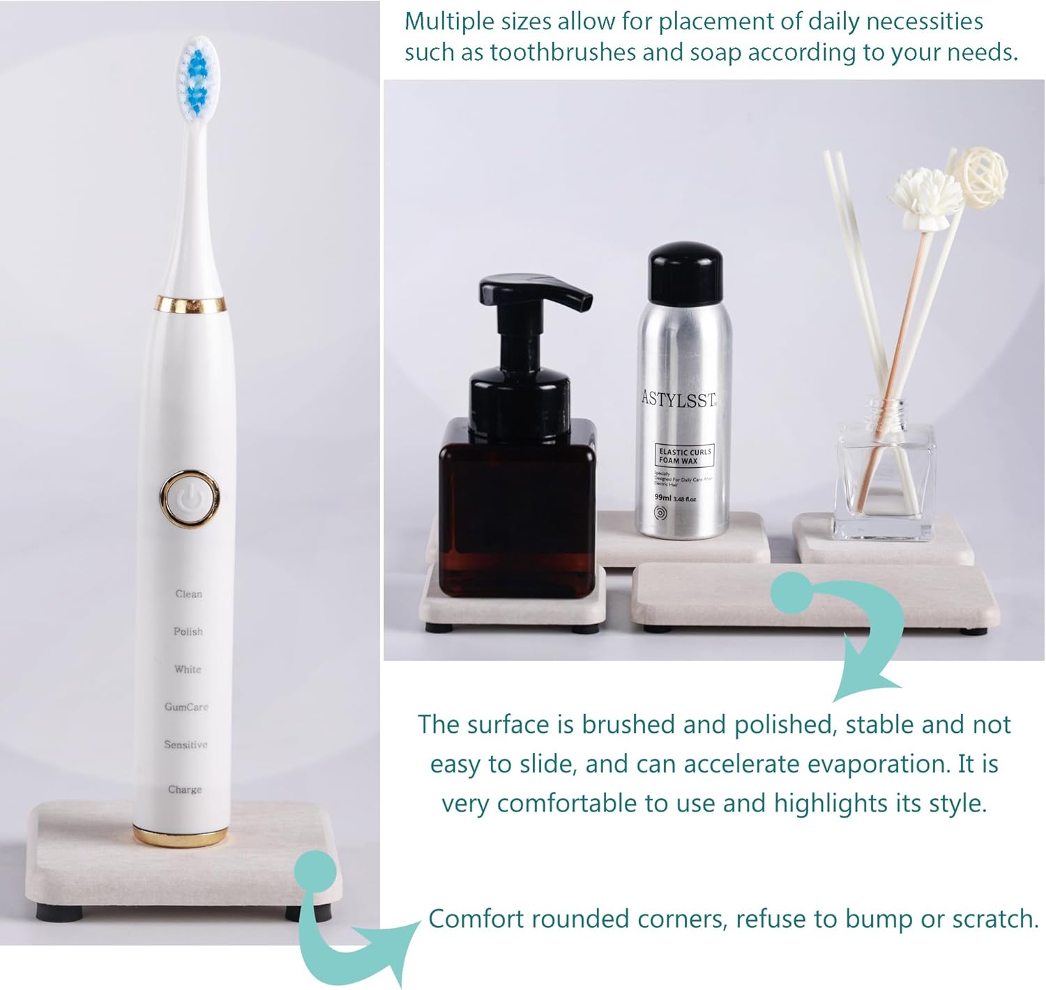 - Made from natural Diatom mud and plant fiber, small holes within diatomite enable it have amazing water absorption. They could absorb water and gets dry in a few minutes. It makes the Bathroom Counter top more dry and tidy.