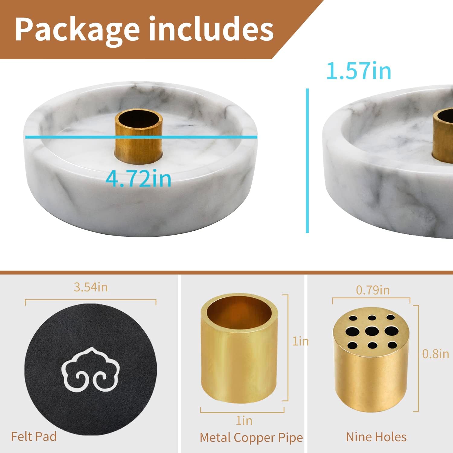- 【You Will Receive】: 1 pcs marble incense holder, 1 pcs nine-hole incense stick, 1 pcs backflow incense holder , 1 felt pad. White sage bundle and Palo Santo incense stick are not included in the package