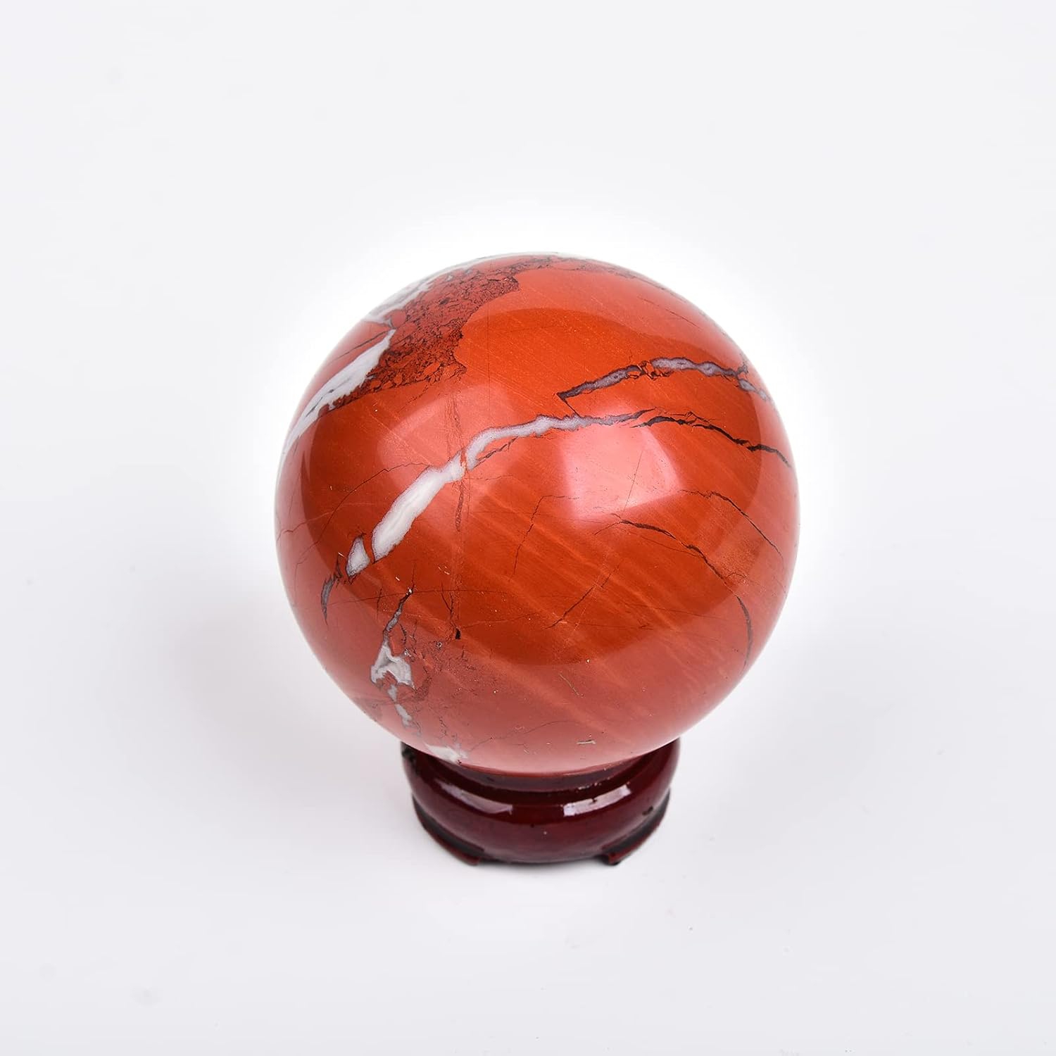 JIC Gem Red Jasper Crystal Ball Natural Quartz Crystal Sphere Stone Ball with Wooden Base (70-80mm)