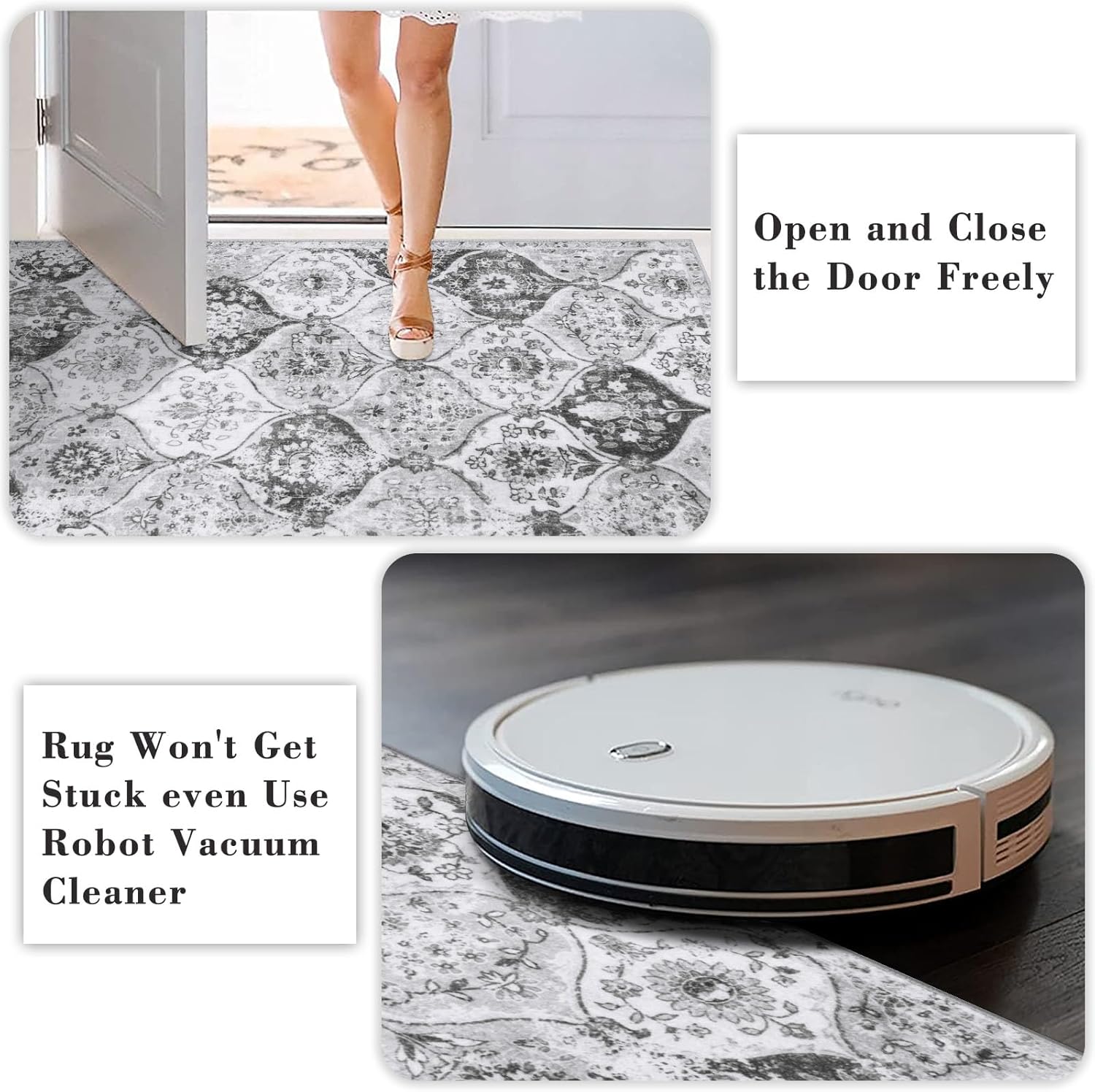 - Ultra-thin and Safe: This ultra-thin Moroccan rug can be easily placed in entryways and under furniture, and won't get stuck on doors and become a tripping hazard. The sweeping robot can move to clean the carpet