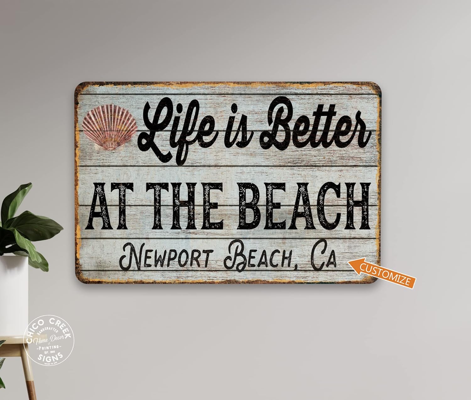 Custom Beach Sign Life is Better At The Beach Wall Art Seaside Beach Décor Personalized Your Text Here Souvenir 108122002013