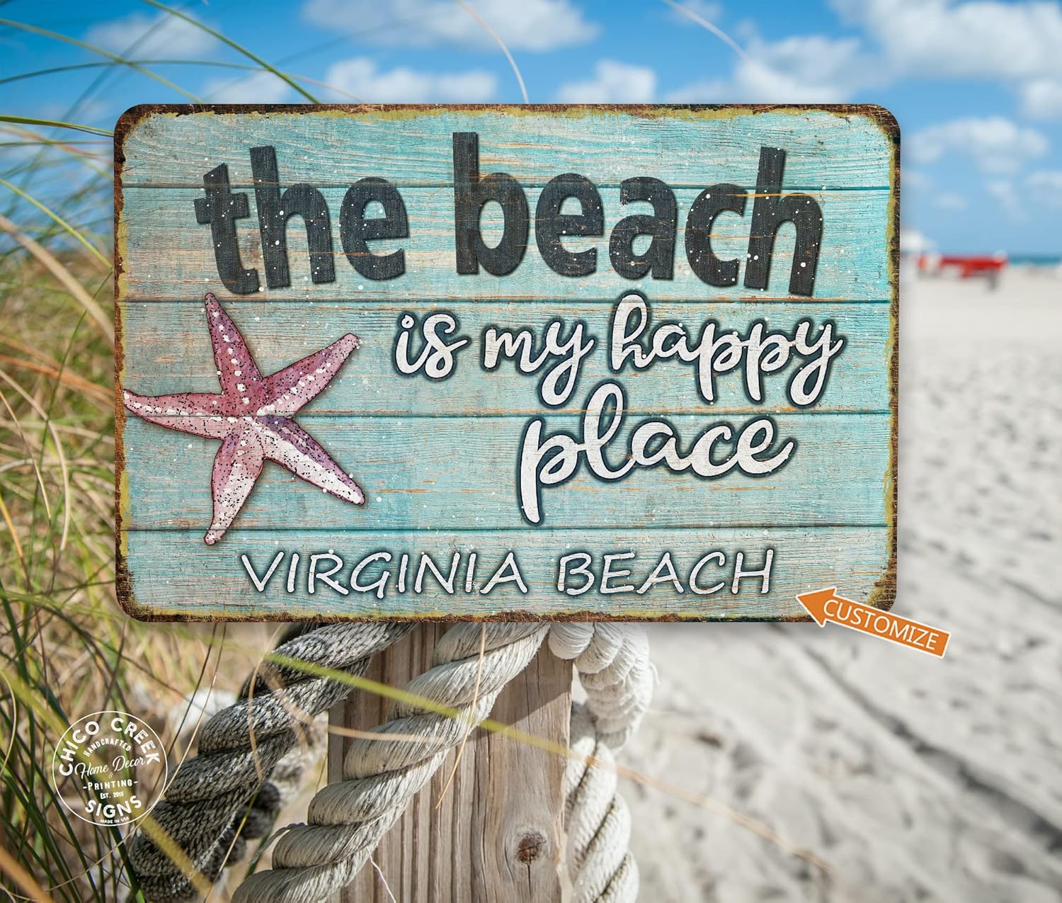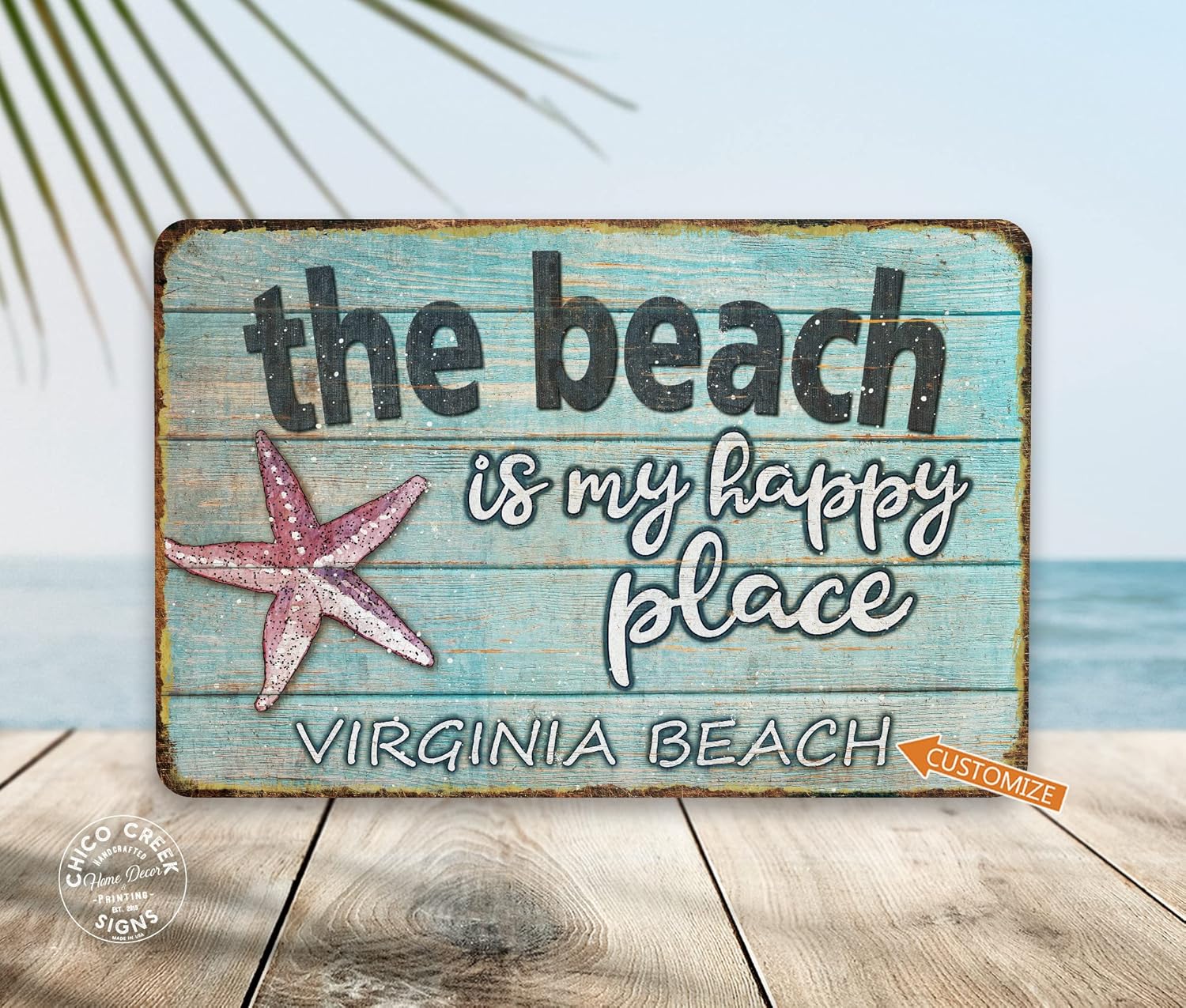 The Beach Is My Happy Place Custom Sign Souvenir Personalized Beach Decor House Décor Home Rustic Wall Art 208122002014