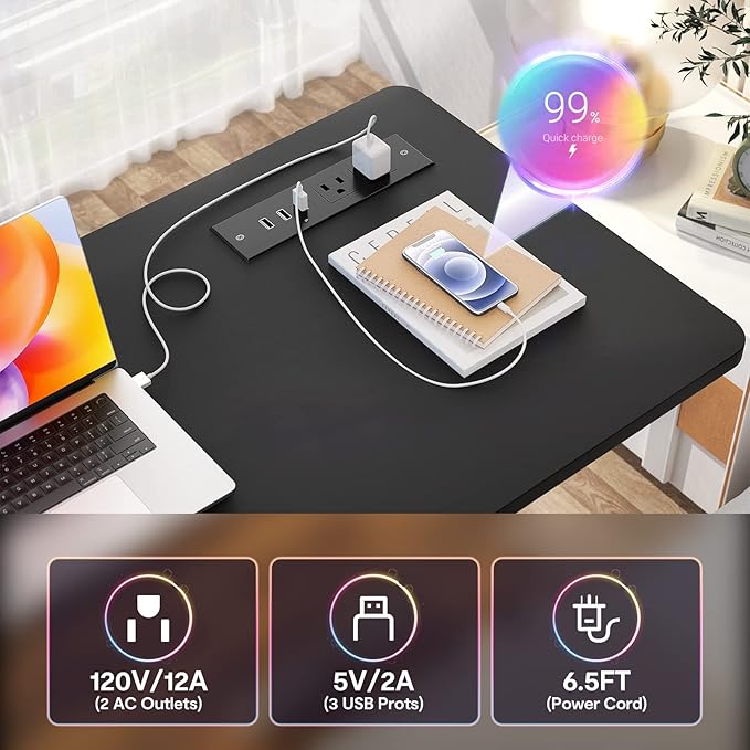- 【Rolling Standing Desk with Power Outlets】Do you have trouble finding power outlets when you use electronic equipment for work or entertainment? Armocity adjustable standing desk come with 2 AC outlets and 3 USB ports, 6.5ft long power supply cord can easily allow you to plug in phones, laptops, AirPods, etc. Come with velcro tape can organize your device's cords.