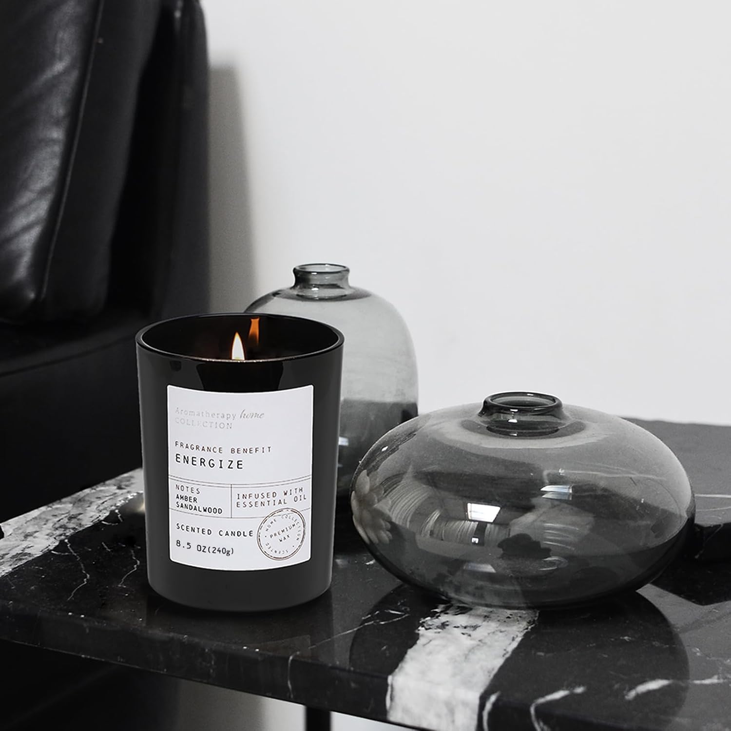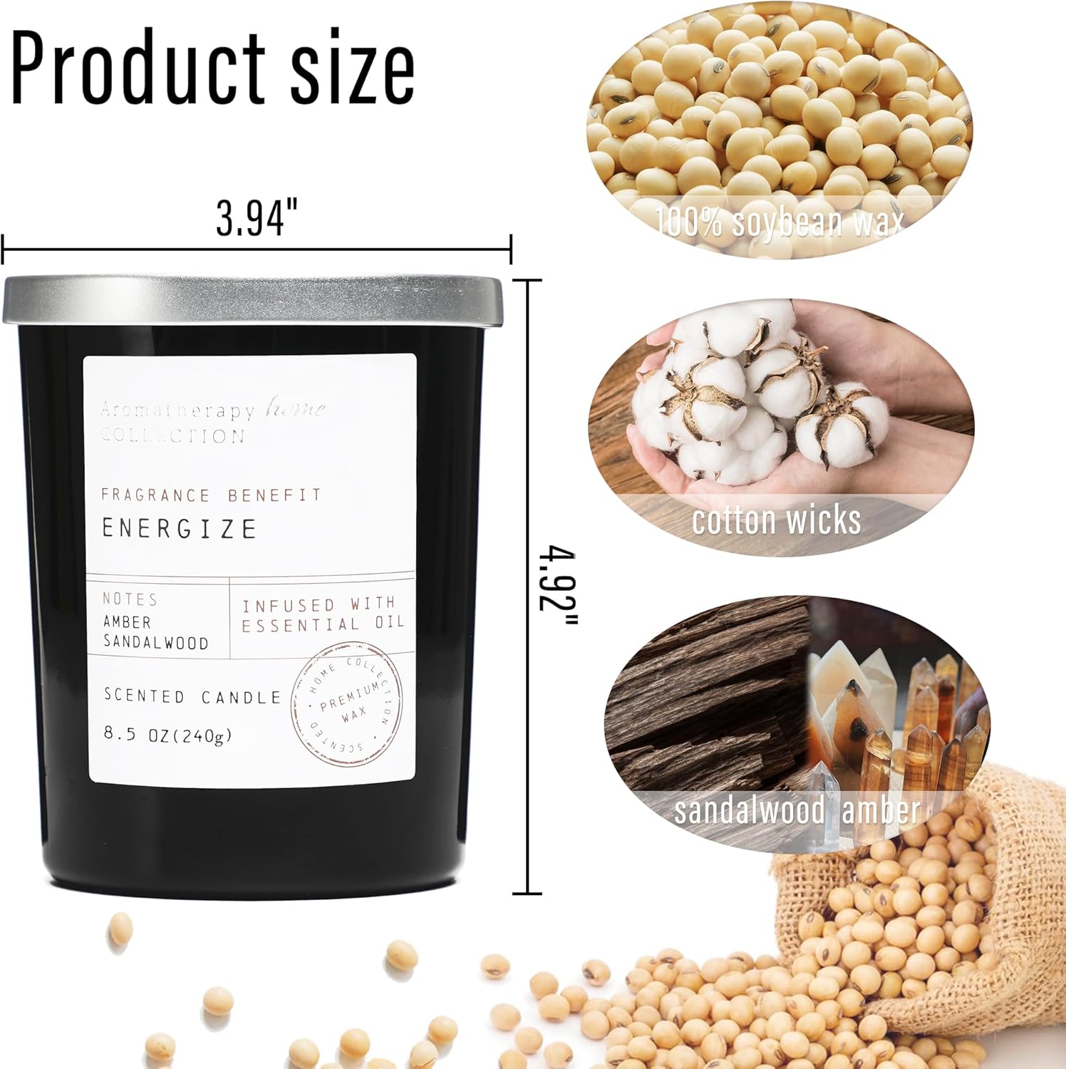 Sandalwood Candle, Sandalwood & Amber Scented Candles,Soy Wax Black Candles for Home Scented,Candle Gift for Men Women,8.5oz