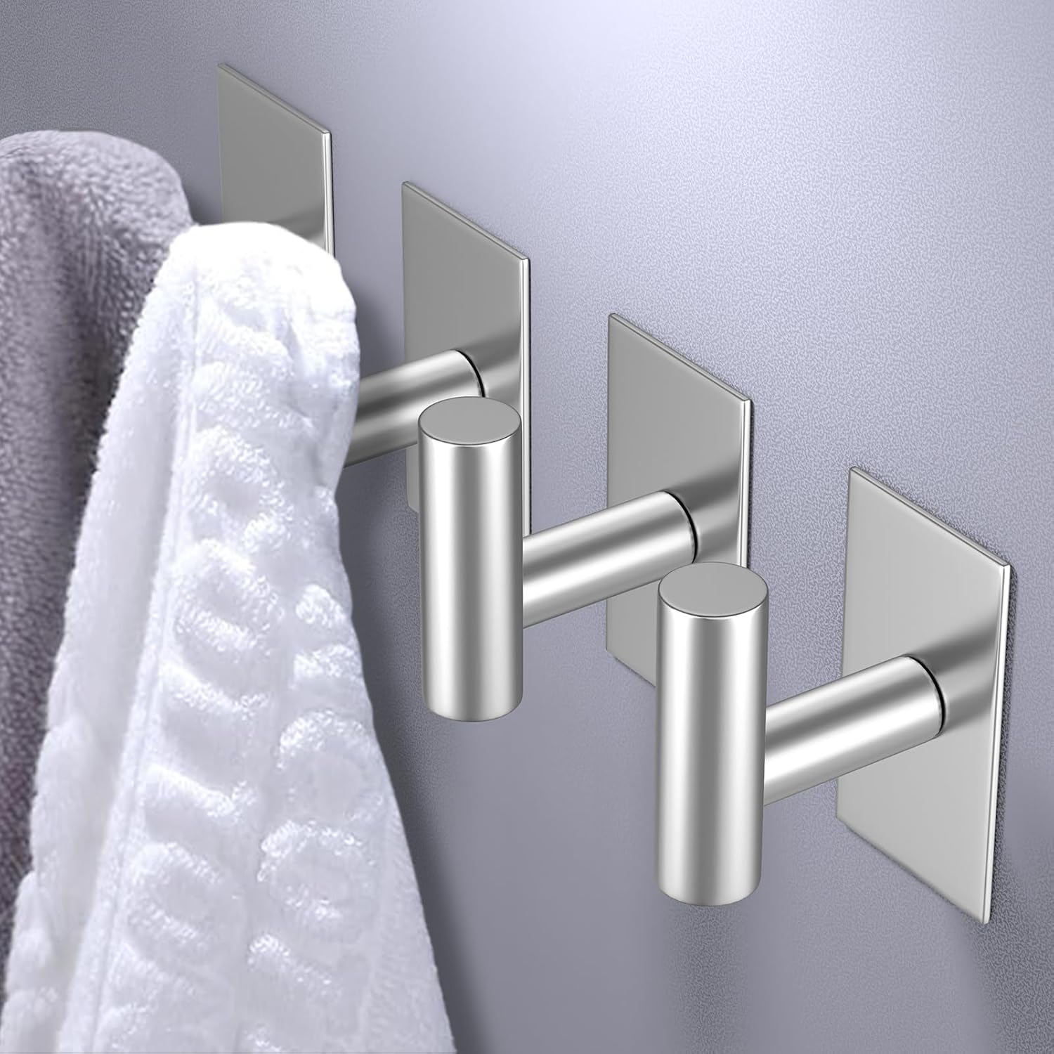 - PREMIUM MATERIAL: Adhesive towel hooks are made of stainless steel, easy to clean, sturdy and durable, very practical home storage tool