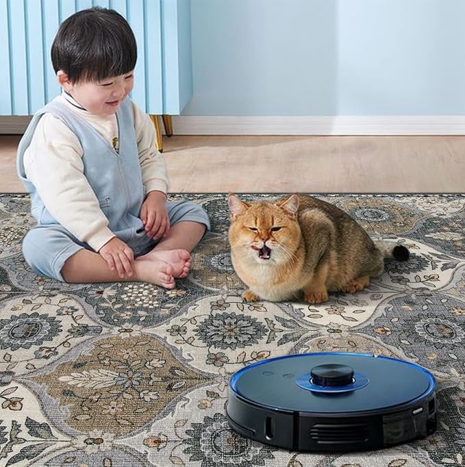 - Ultra-thin and Safe: This ultra-thin Moroccan rug can be easily placed in entryways and under furniture, and won't get stuck on doors and become a tripping hazard. The sweeping robot can move to clean the carpet