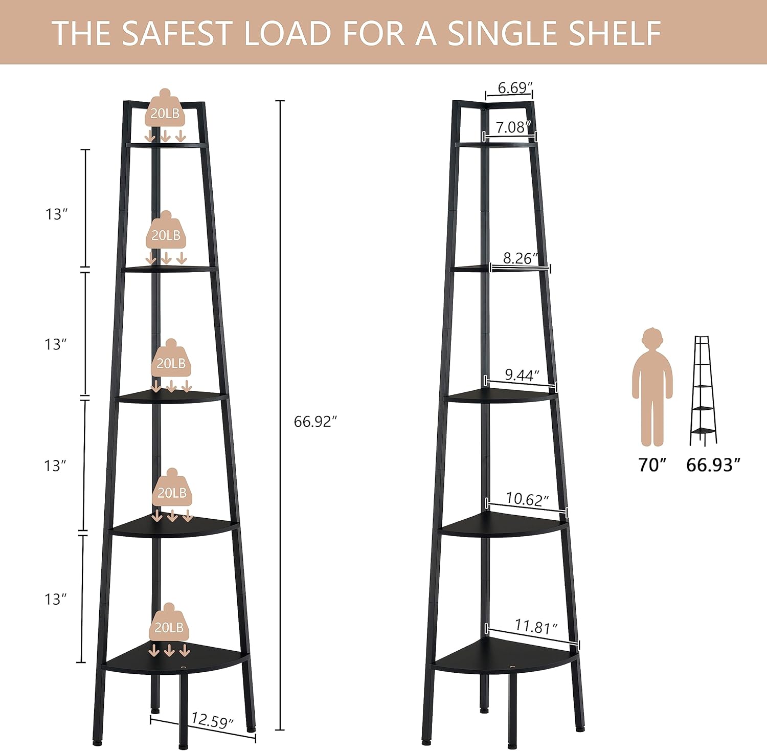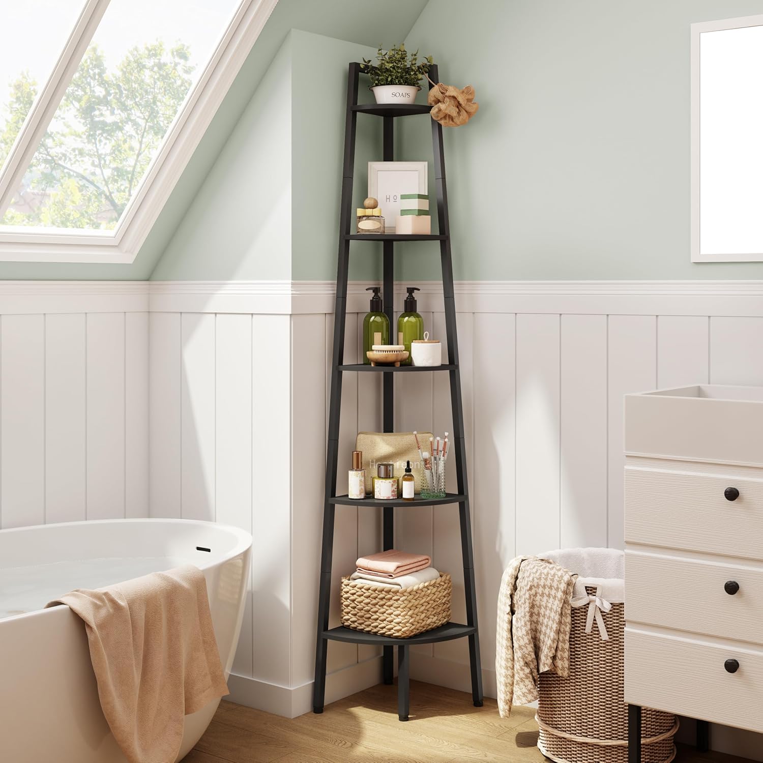 - Industrial and Fashion Design: The 5-tier ladder corner shelf combines the charm of classic and modern furniture styles. Meet your needs and create a calm and fresh atmosphere for your room. This shelf stand which combines decorative and functional purposes together