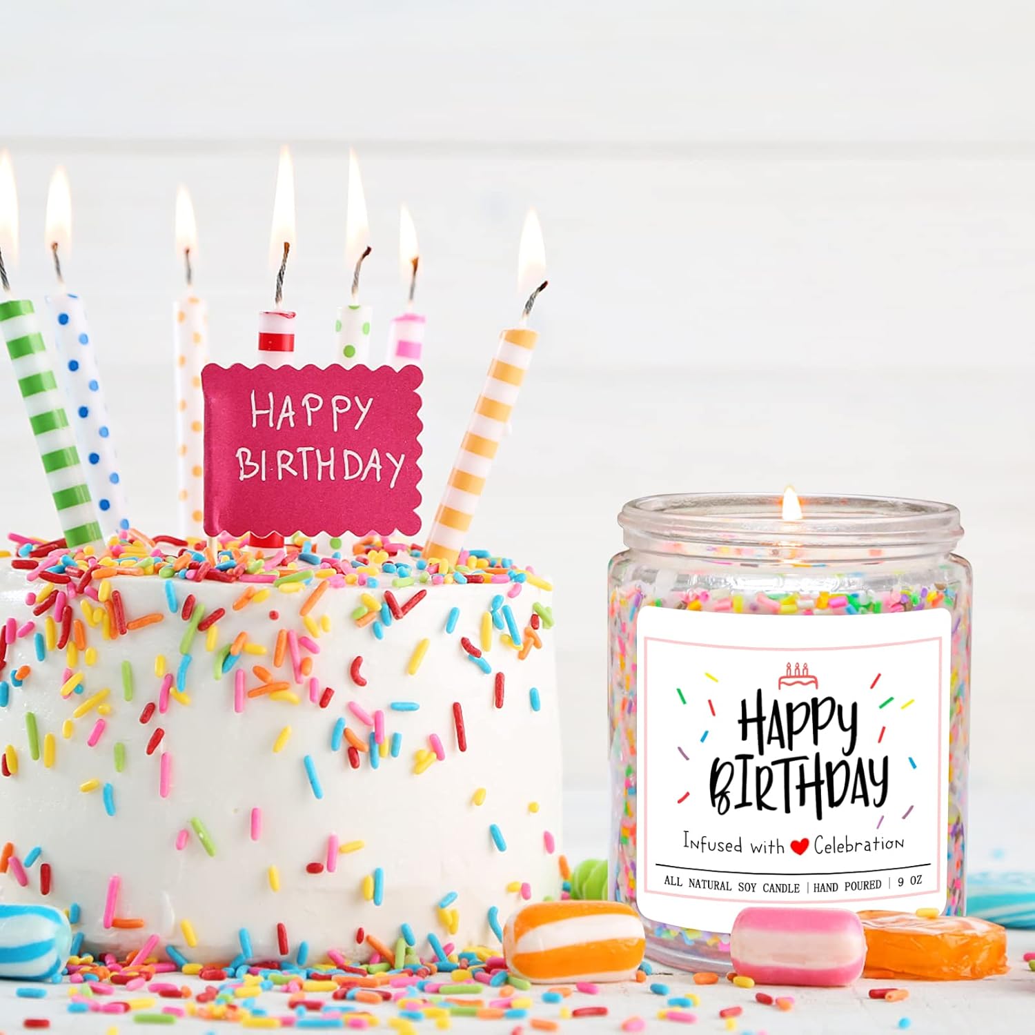 Homsolver Happy Birthday Gifts for Women Men, Vanilla Cream Scent with Sprinkles Candy Birthday Candles, Unique Best Friend Idea Gifts for her, Handmade Candle Decor