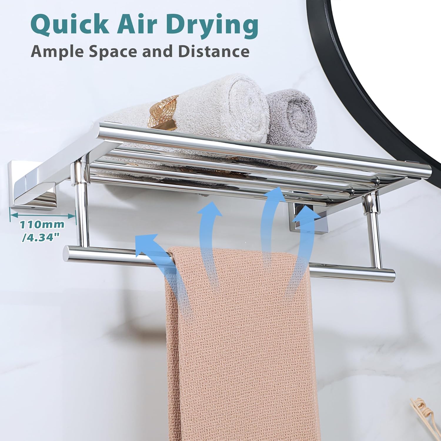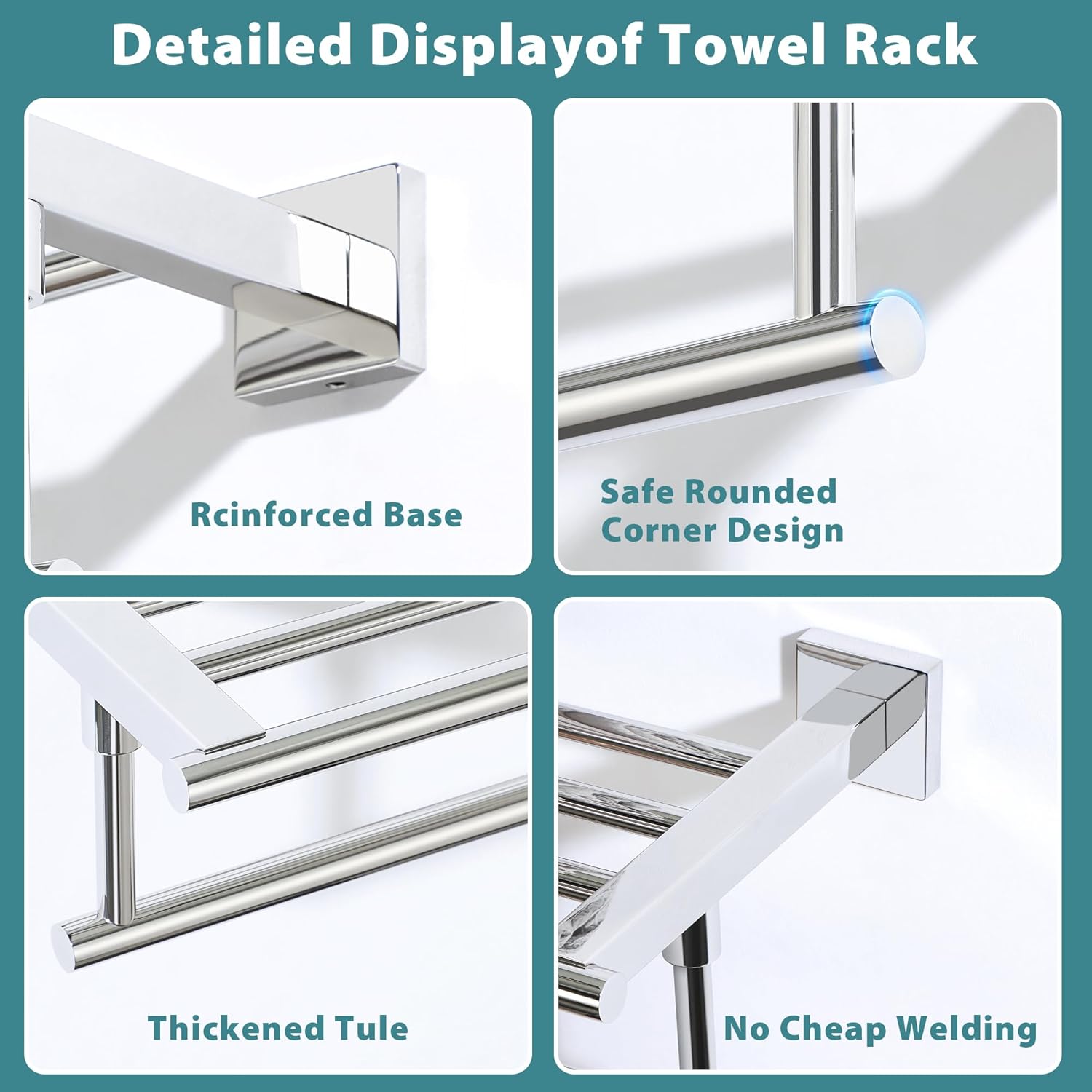 Alise 16 Inch Towel Racks for Bathroom, Towel Rack Wall Mounted with Tower Bars, SUS 304 Stainless Steel Bathroom Shelf, Heavy Duty Hand Towel Holder (Polished Chrome )
