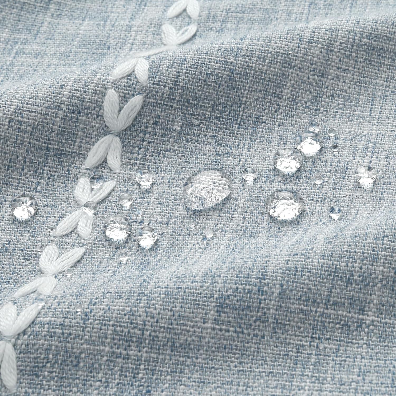 - Wrinkle Free & Ultra Thick Fabric - 310 GSM, 15% linen, 85% polyester creates farmhouse like effect for this blue shower curtain, so that it could keep in place. The quality curtain is elegant and soft, which can deliver a rustic or country-like bathroom environment.