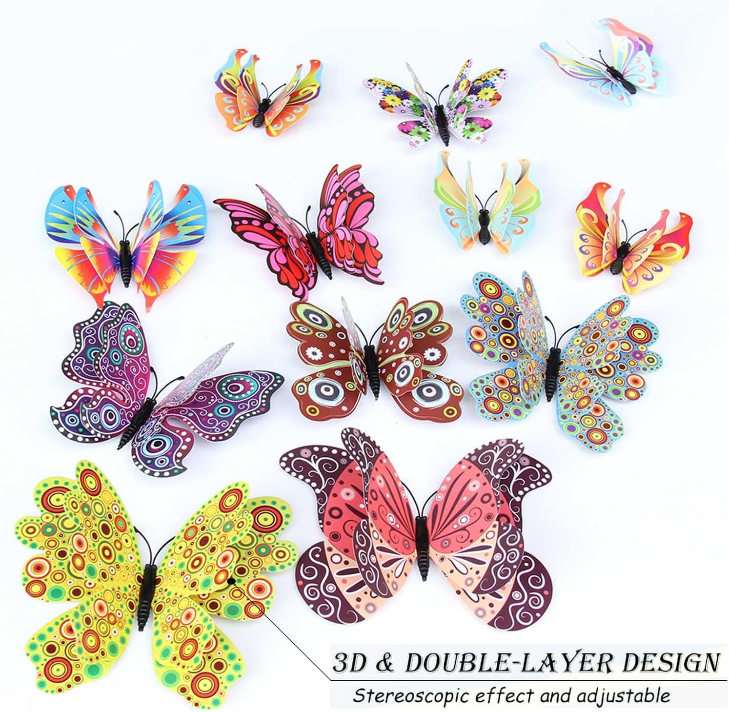 - 12 Different Styles:Total 48pcs butterfly stickers are in 4 sizes(2.4 inches-16 pcs, 3.15 inches-16 pcs, 3.9 inches-8 pcs, 4.7 inches-8 pcs). and 12 different styles (as picture showed), rich and charming, It will Make your home more wonderful and comfortable
