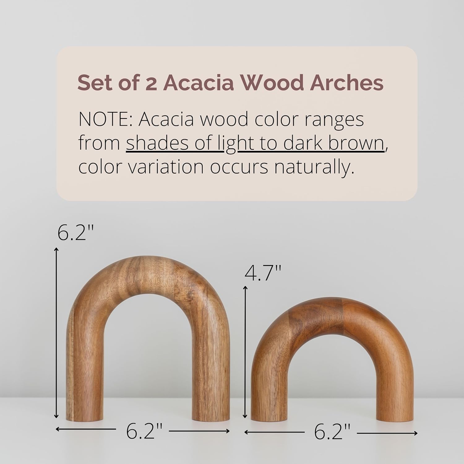 - π³ ACACIA wooden decor makes TIMELESS accessories you can keep for years! It's a warm natural book shelf decor that goes well with decorative books. Arch SIZE: 4.7"(H) x 6.2"(W), 6.2"(H) x 6.2"(W).