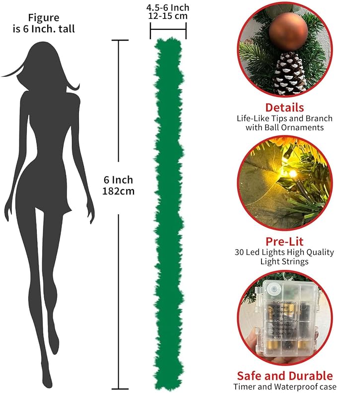 - 【Kindly Remind】-The christmas wreath is 6ft/72 Inch with fully extended,please read carefully about the size.If any problem,please contact us for free,we provide 24 hours customer service