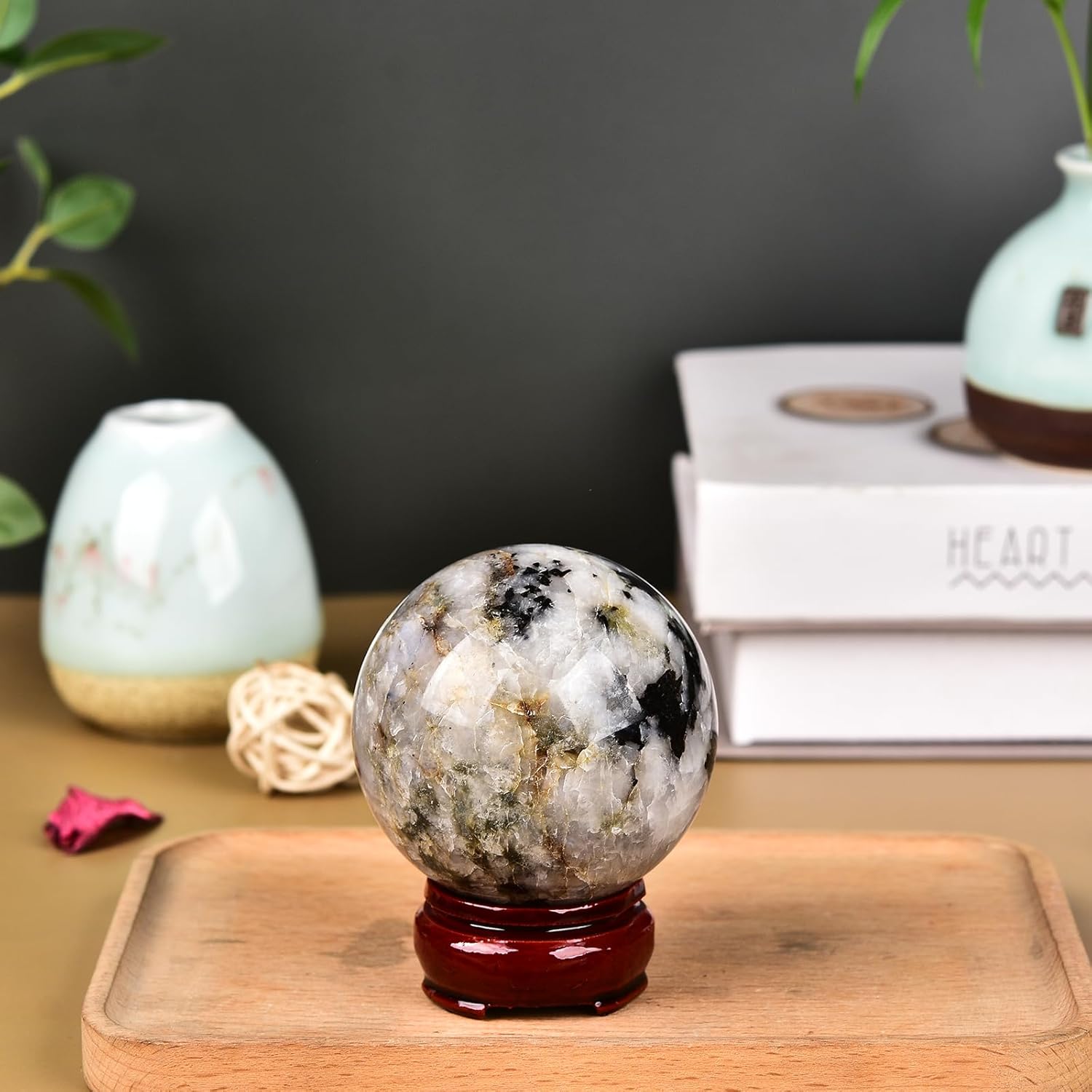 - 【What You Receive】:You will receive a Black and White Tourmaline Quartz Crystal Ball Sphere with wooden stand,Diameter3.2-3.5Inch.Each and every specimen is unique and you will receive ones similar to the image shown