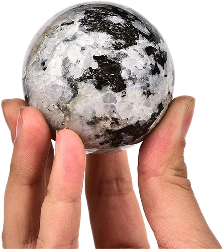 - 【Black and White Tourmaline Quartz Crystal Ball】:size:50-60mm,Material:Natural Black and White Tourmaline Stone,Quantity:1Pce,with Free base,Naturally mined crystals,retaining their natural texture,are carved with the Sphere shape.It stands out with a gentle and attractive crystal glow