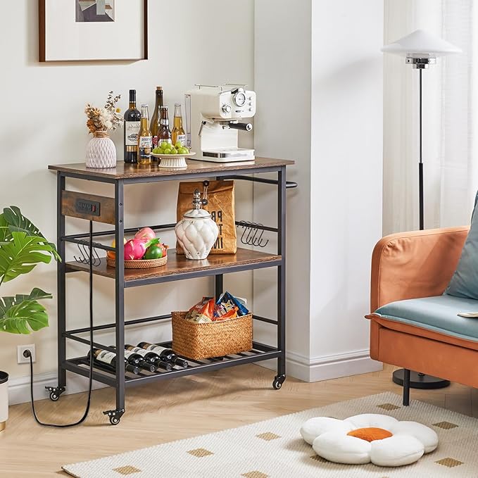 - Multi functional use: can be used as a breakfast table, coffee machine table, or bread rack table, or as a small cart for outdoor party. Equipped with 8 multi-functional hooks, it can be used to hang your various kitchen utensils.