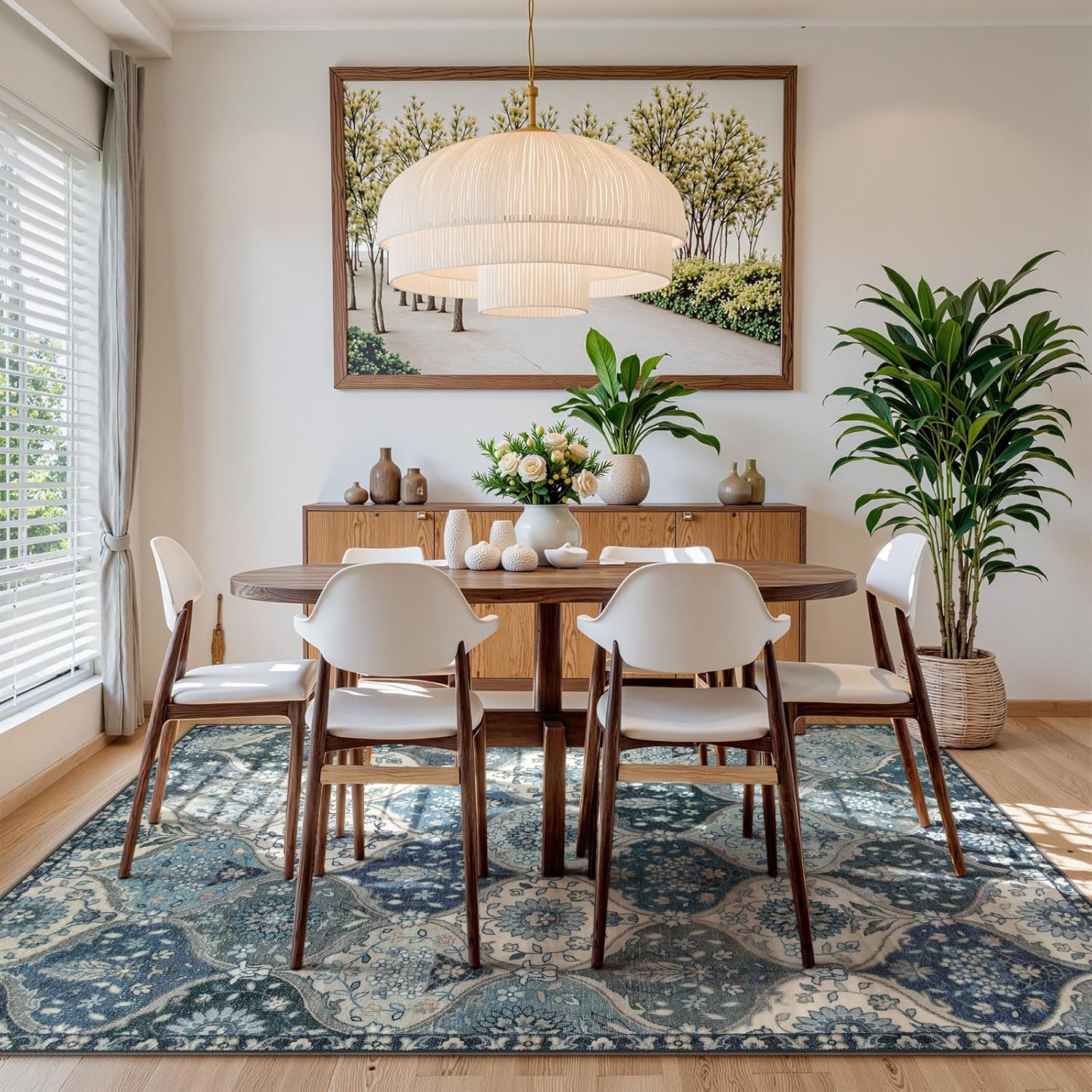 Lahome Moroccan 8x10 Area Rugs for Living Room, Washable Rugs 8x10 Ultra-Thin Oriental Non-Slip Non Shedding Accent Carpet for Bedroom Dining Room Office Nursery, Blue