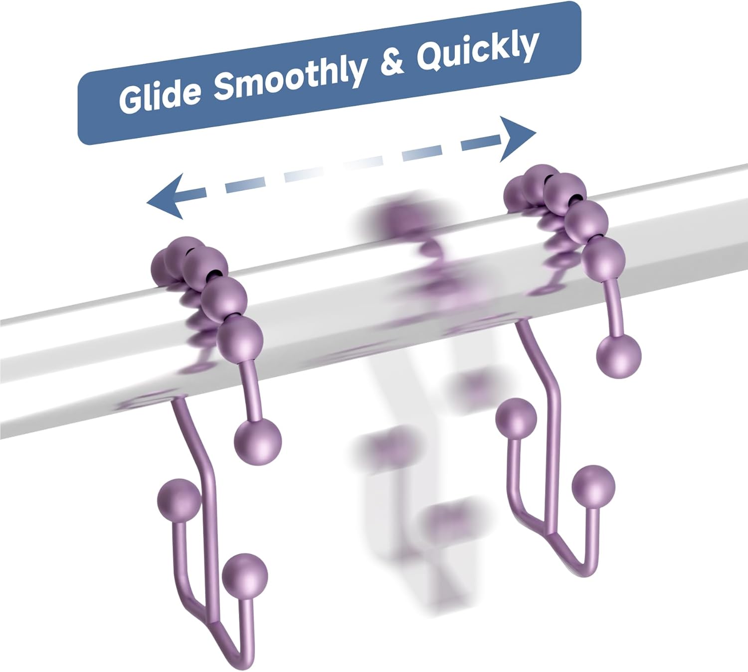 - Smooth gliding - Engineered spherical roller balls of shower curtain hooks can glide smoothly and fast across shower rod.