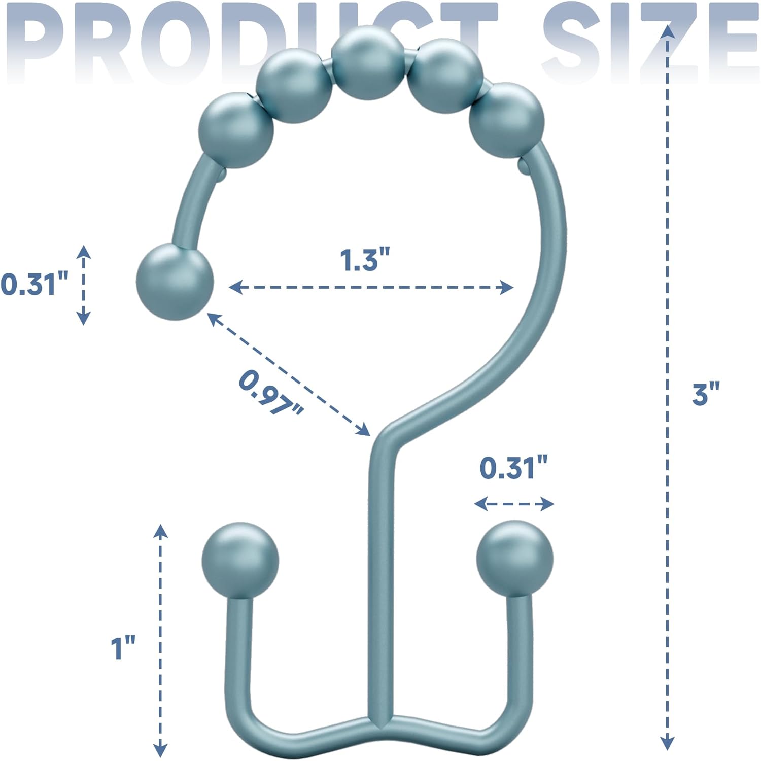 Titanker Shower Curtain Hooks Rings, Rust-Resistant Metal Double Glide Shower Hooks for Bathroom Shower Rods Curtains, Set of 12 Hooks - Lightcyan