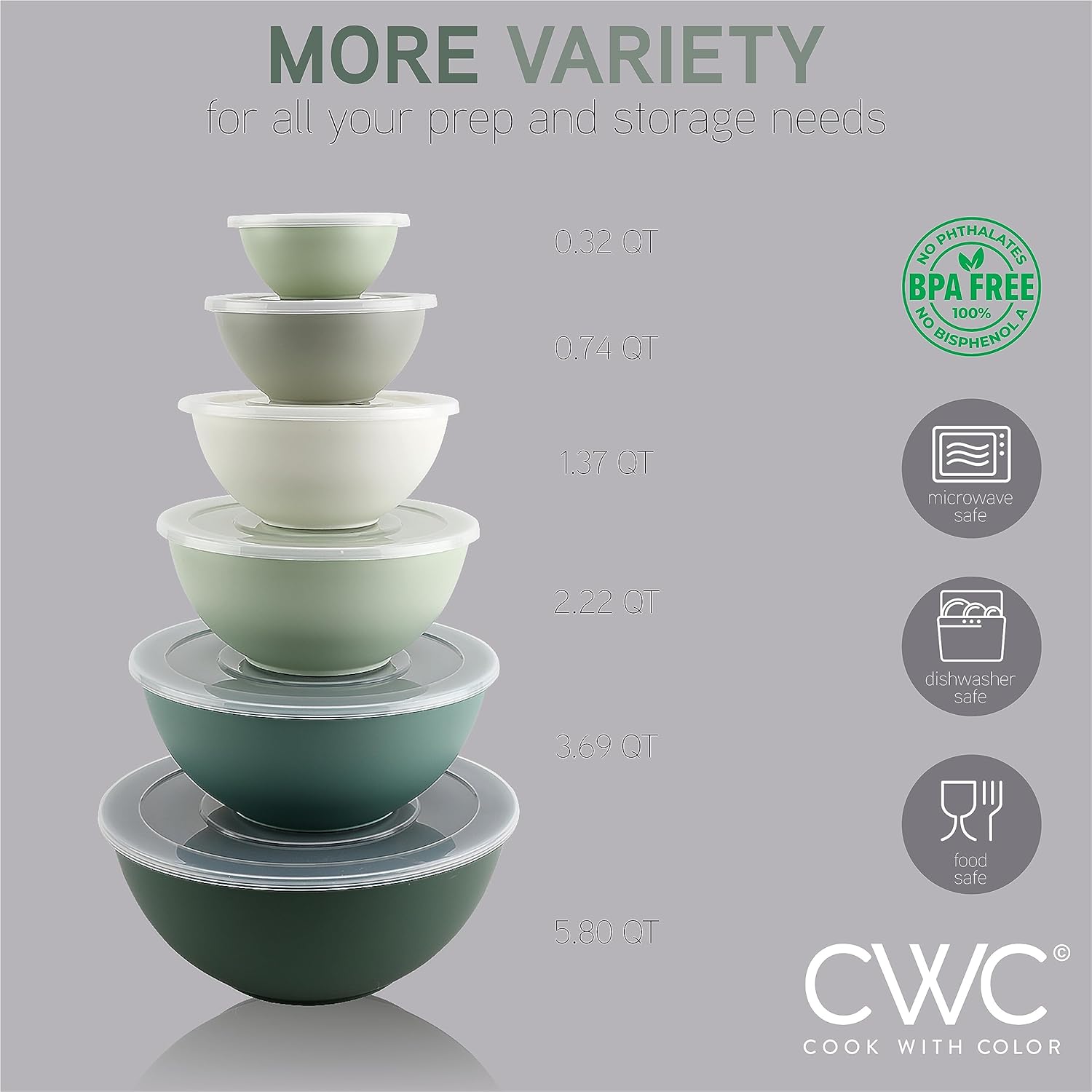 COOK WITH COLOR Mixing Bowls with Lids - 12 Piece Plastic Nesting Bowls Set includes 6 Prep Bowls and 6 Lids, Microwave Safe Mixing Bowl Set (Sage)