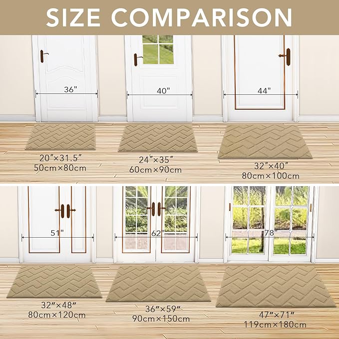 hicorfe Indoor Door Mat,Non Slip Door Mats,32"x48" Front Back Door Mat Rubber Backing,Absorbent Resist Dirt Entrance Inside Floor Mats for Entryway Washable Low-Profile(Beige)