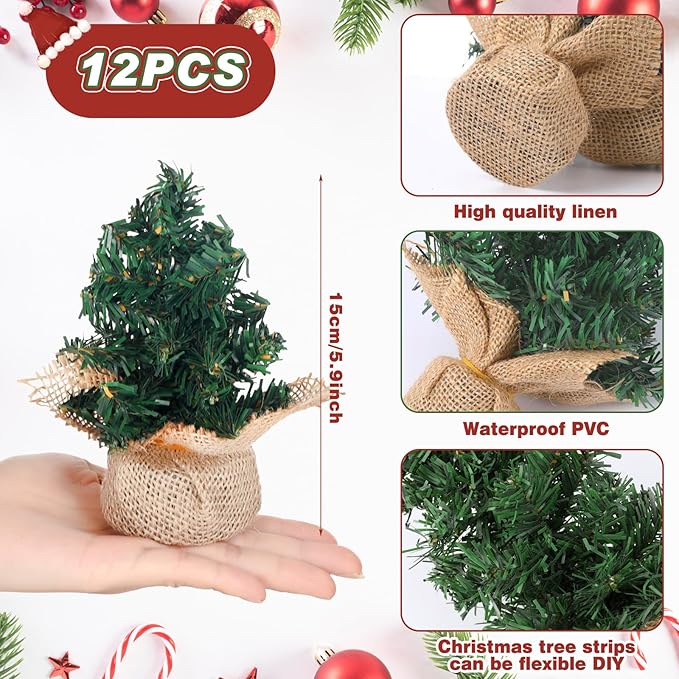 - What You Are Provided: package includes 12 pieces of mini Christmas trees measuring approx. 5.91 Inches/ 15 cm, suitable for various tables, lightweight and portable, easy to move and carry, adequate quantity to meet your different use demands, and you can also share with your family and neighbors