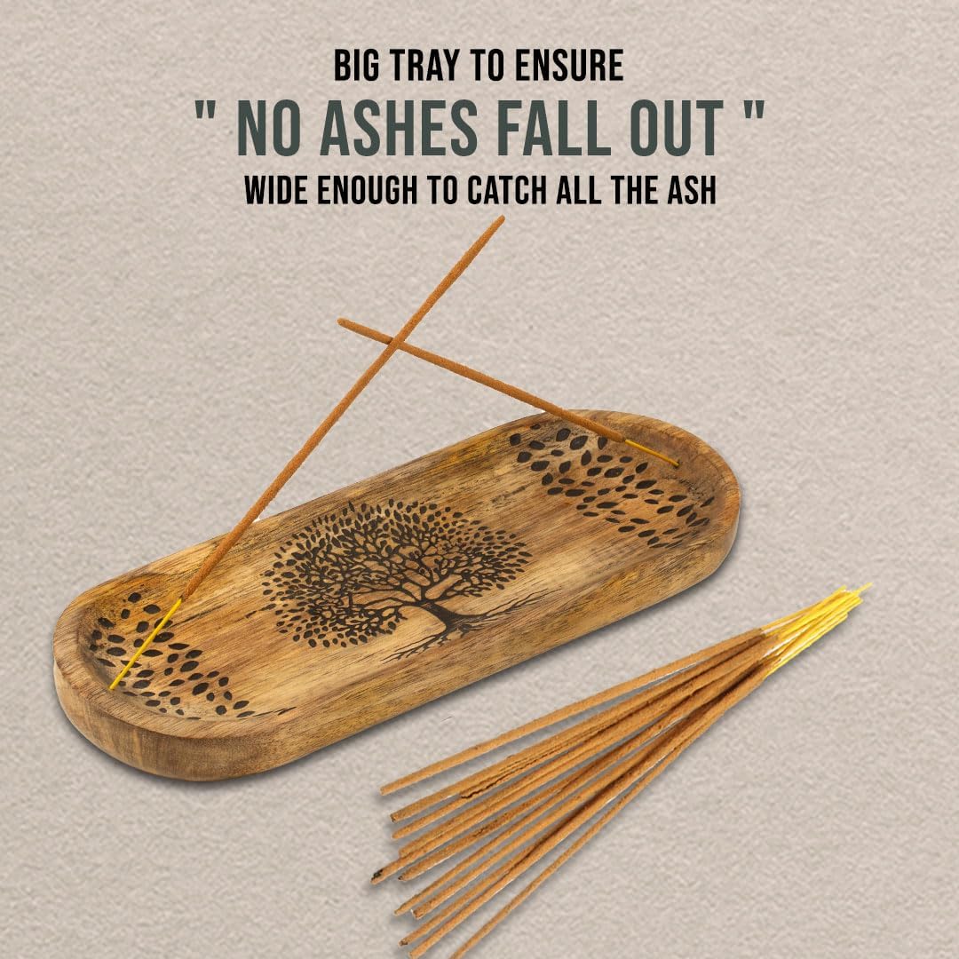 Incense Holder for Sticks Hand Carved - Tree of Life - Incense Burner/Ash Catcher- Handmade Wooden Insence Tray – Modern Gift Home/Room/Kitchen Décor 11x4x1.5 Inch