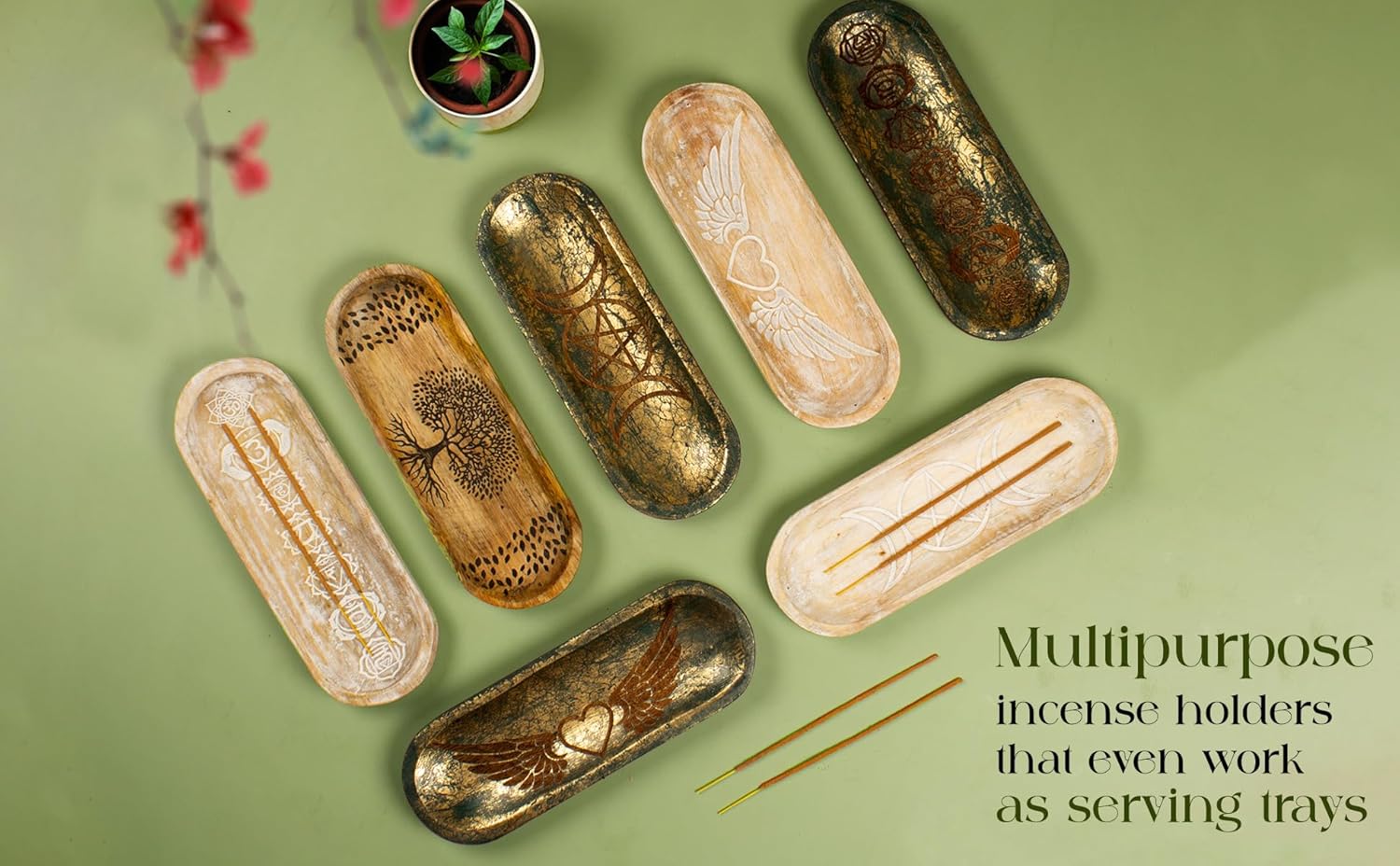 - STYLISH DESIGN :This handmade incense burner holder has a beautiful Hand Carved pattern with a natural rustic wooden appearance which makes this Holder look stylish and classy ,Beautifully packaged for mindfulness Gifts .
