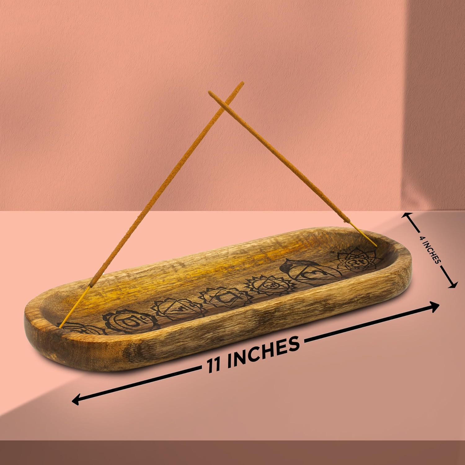 Hand Carved Incense Holder-Incense Burner/Ash Catcher/Handmade Wooden Insence Tray – Modern Gift Home/Room/Kitchen Décor Size 11x4x1.5 Inches