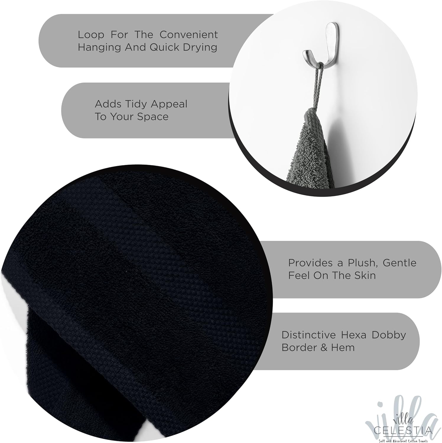 100% Cotton Wash Cloth for face & Body Set of 12, (12 x 12 inches) Sustainable, Soft, Highly Absorbent, Combed Cotton Wash Cloths Pack of 12 for Hotels, Spa, Bathroom, Dorm, Black