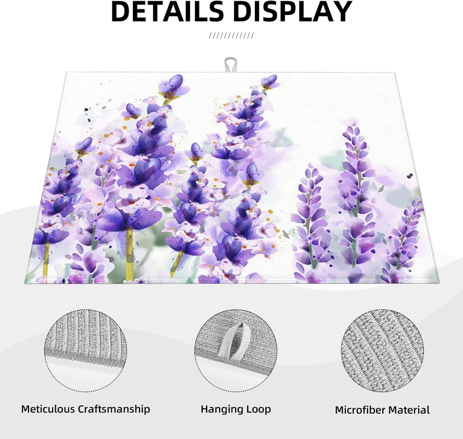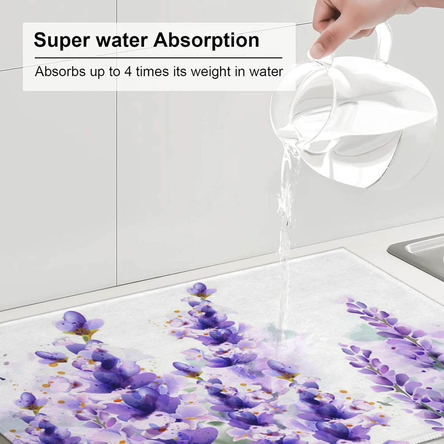 Absorbent Dish Drying Mat For Kitchen Counter, Lavender Microfiber Dish Drying Pad, Kitchen Gadgets For Easy Clean Multi-Use