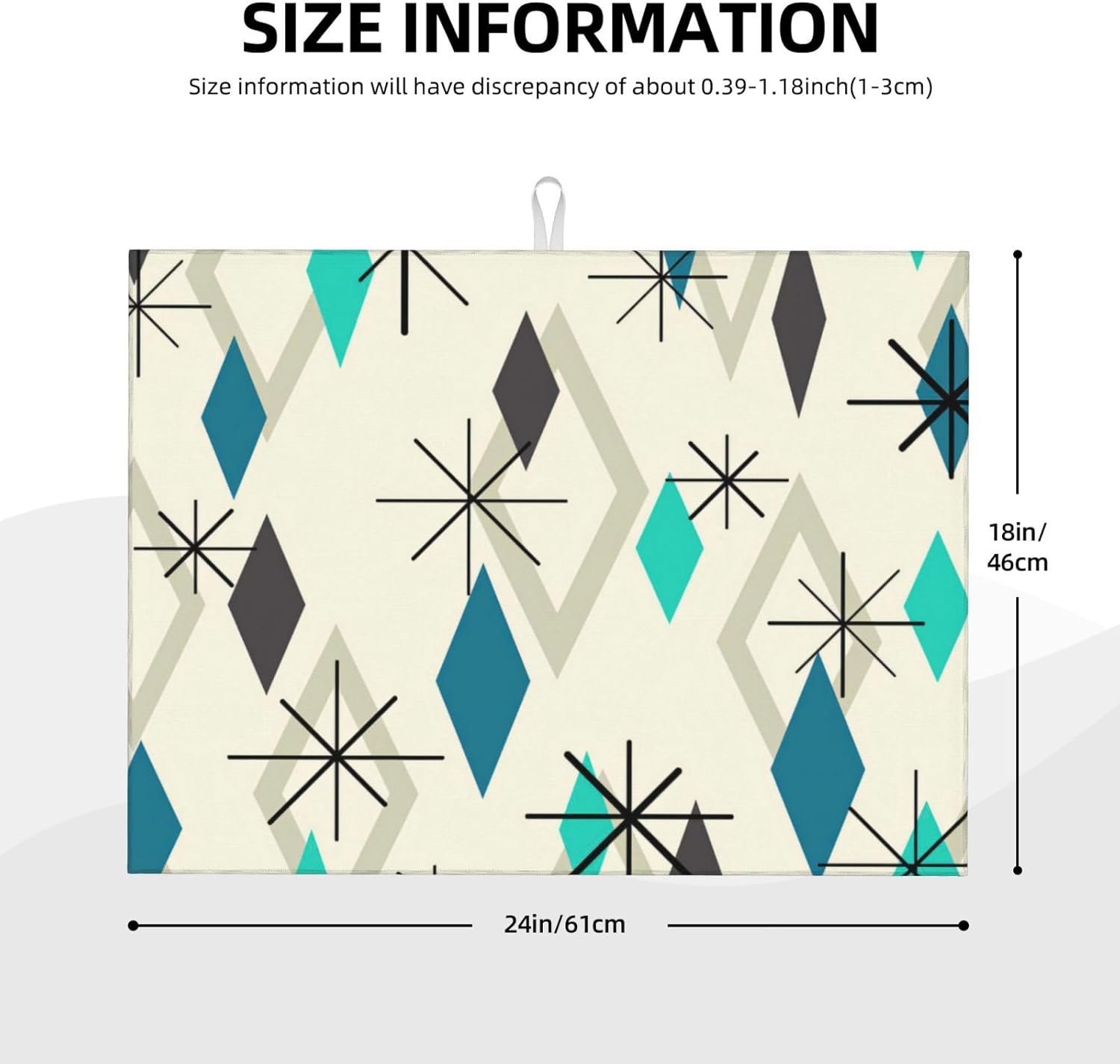 Vintage Mid Century Geometic Dish Drying Mat For Kitchen Counter, Super Absorbent Microfiber Large Dish Drying Pad 18"x24" For Kitchen Dishware Coffee Maker Bar