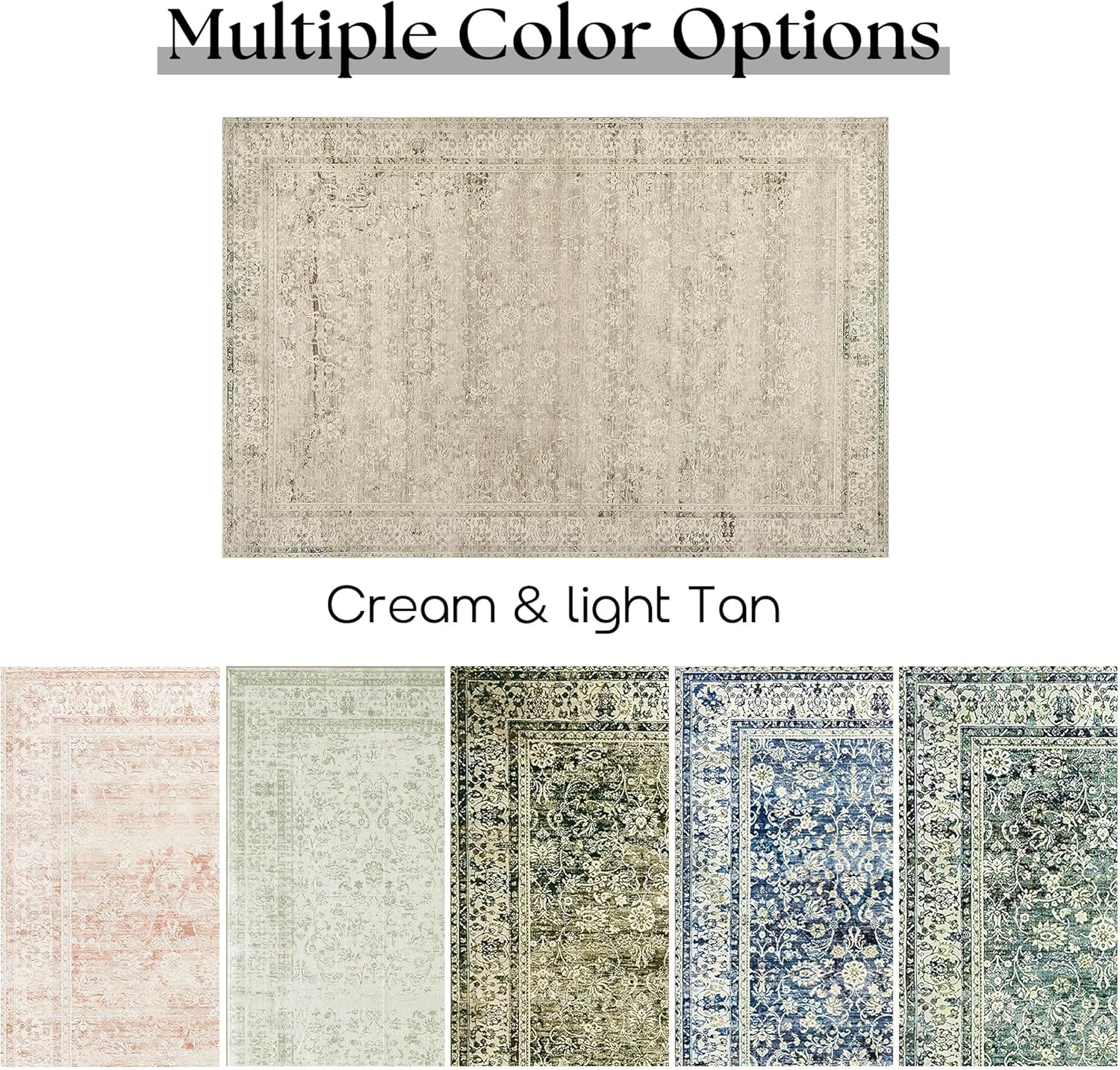 Modern Farmhouse Area Rug 5 x7 Washable Floral Earth Tone Neutral Boho Nursery Rug 5x7 for Baby Boy Bedroom,Tan Brown and Cream Beige