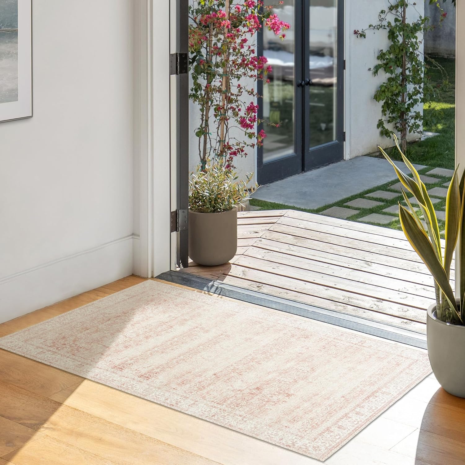 Small Throw Rug for Bedreoom 2x3 Washable Boho Aesthetic Pink Floral Non Slip Cute Area Rug for Side of Bed Teen Girls Room Kitchen Bathroom