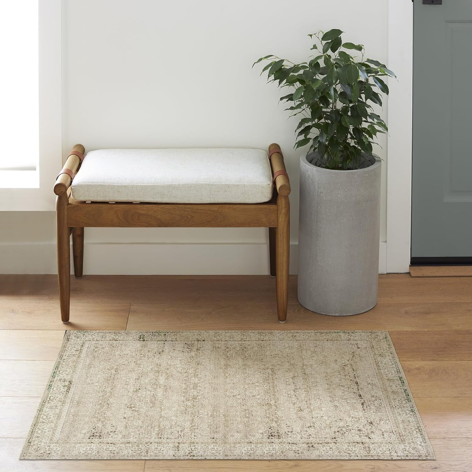 Boho Kitchen Rug Washable,2x3 Non Slip Farmhouse Neutral Small Area Rug for Bathroom Bedroom Indoor Entrway Ultra Thin Fit Under Door,Tan Brown and Cream Beige