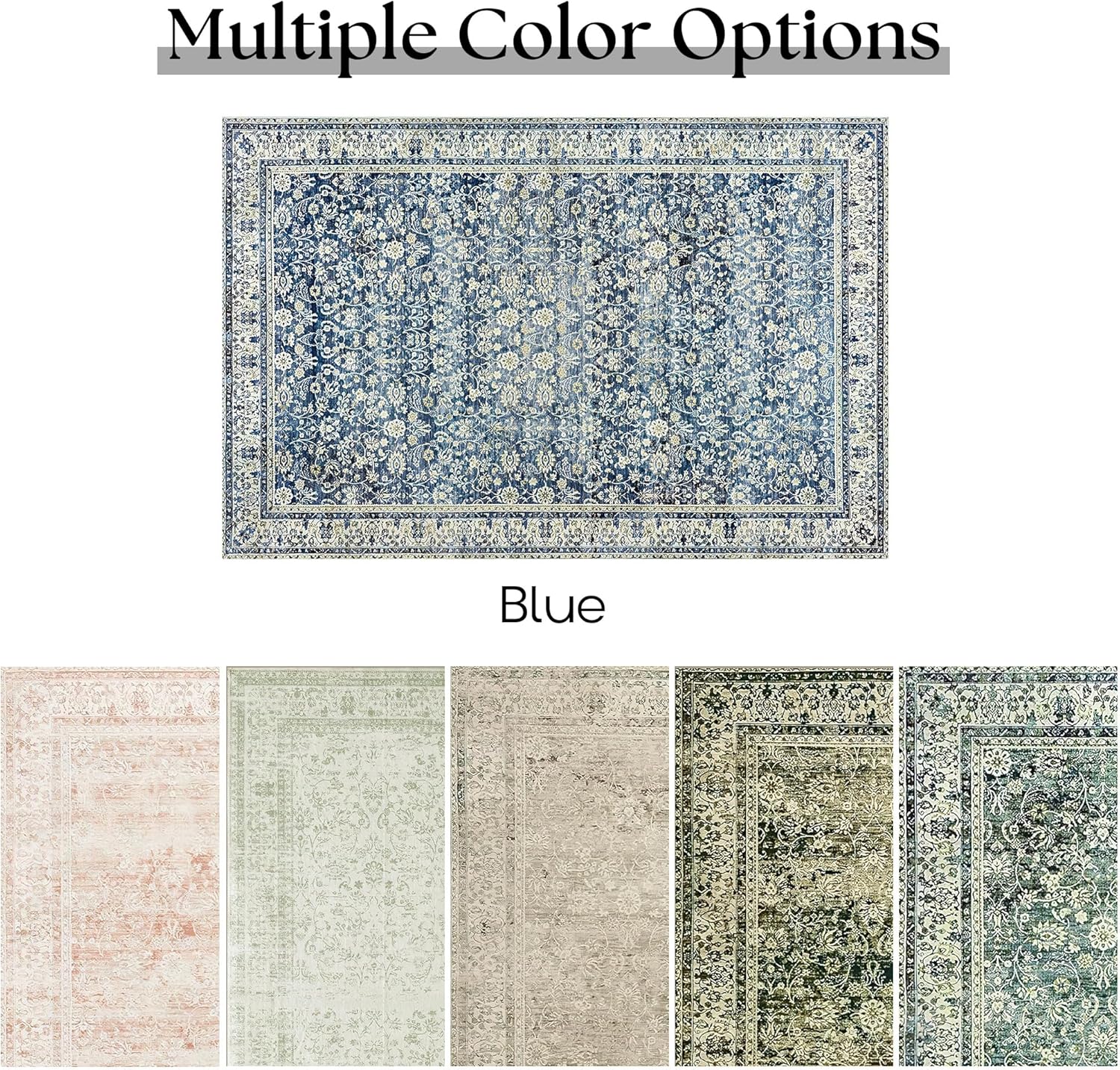 Blue Area Rug for Living Room 8x10 Washable Vintage Farmhouse Big Large Boho Distressed Carpet Rugs for Bedroom,Light Blue and Cream Polyester Rayon Cotton Blend