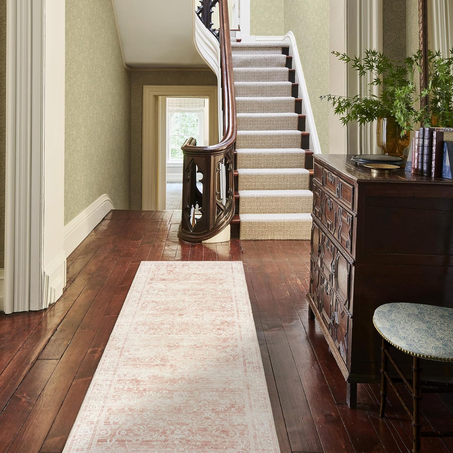 Pink Boho Runner Rugs for Hallway Kitchen Bathroom Washbale Non Slip Cute Bed Side Bedroom Floor Laundry Room Rug Runners,2x6,24 x 72 Inch