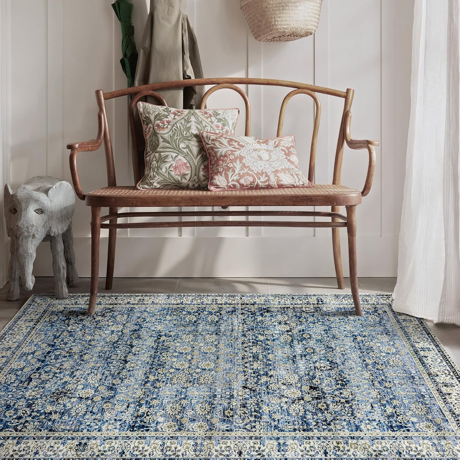 Blue Vintage Design Floral Area Rug Distressed Carpet 3x5 Cover Print Multi Rug Kitchen Living Room Bedroom Dining Room