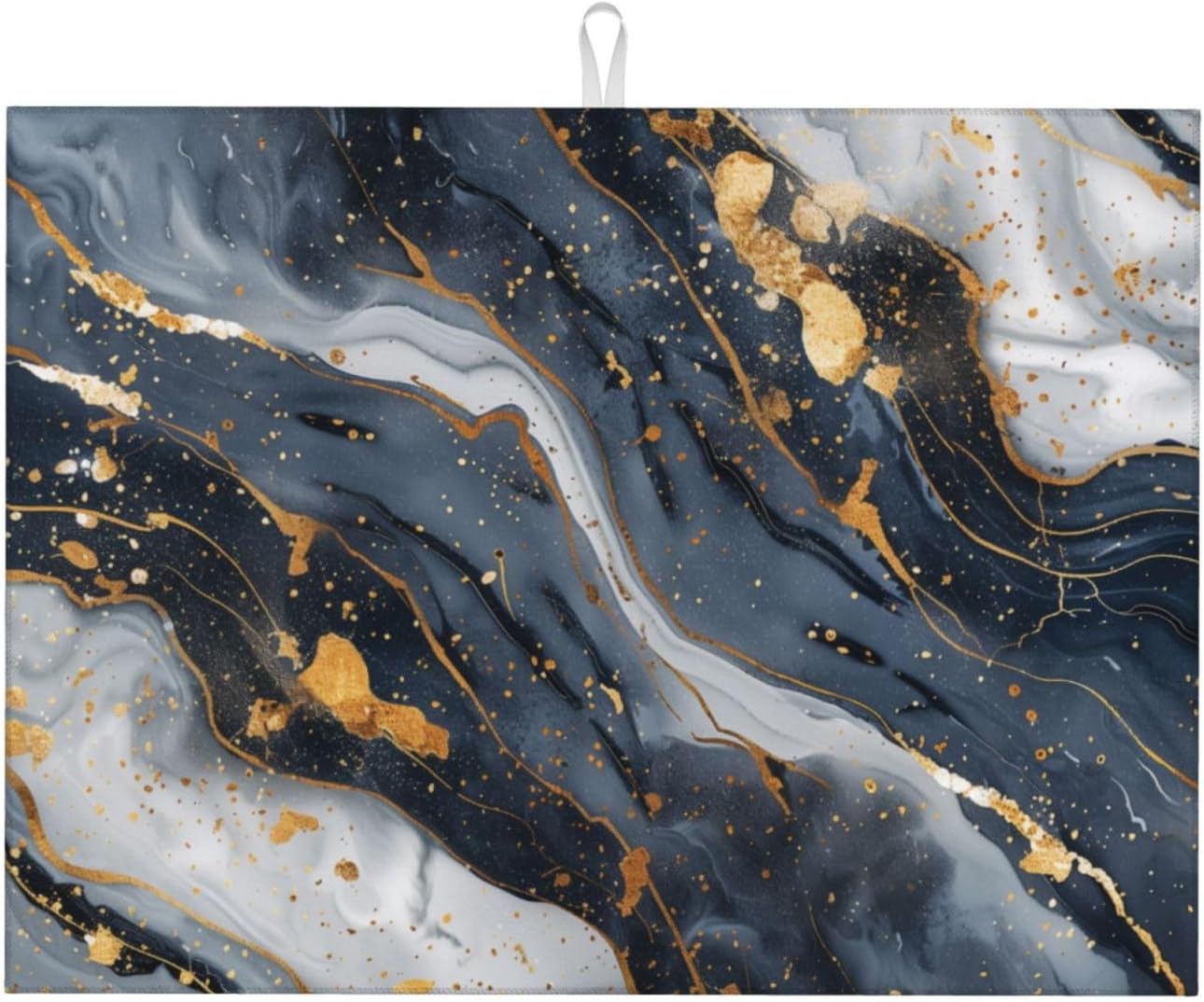Absorbent Dish Drying Mat For Kitchen Counter, Blue Marble Microfiber Dish Drying Pad, Kitchen Gadgets For Easy Clean Multi-Use