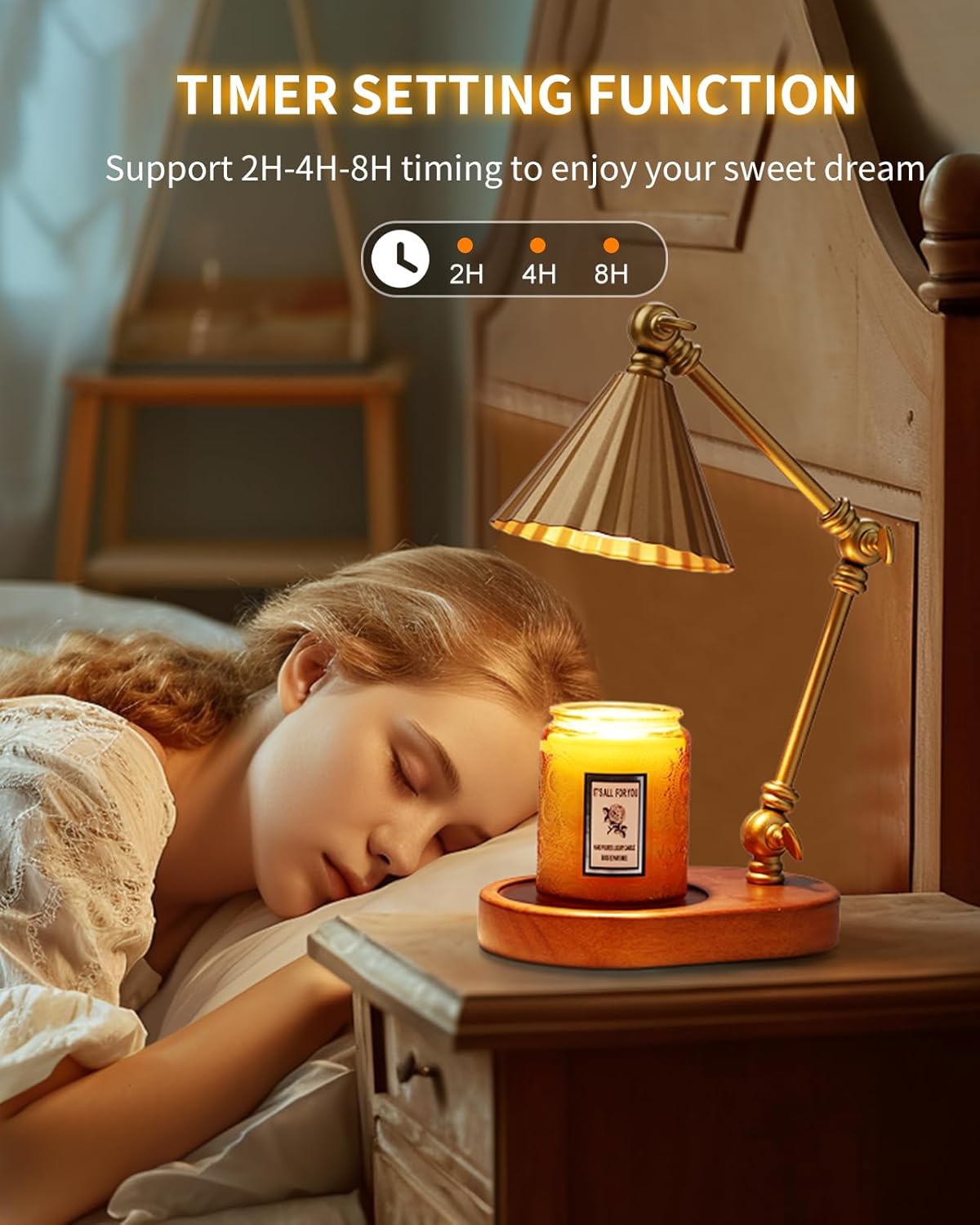 - CANDLE WARMER LAMP WITH TIMER DIMMER: The candle warmer offers 4-level and stepless dimming setting; higher brightness facilitates faster candles melting. With 2-4-8H timer, the lamp warmer can automatically shut off during sleep. Very safe and convenient